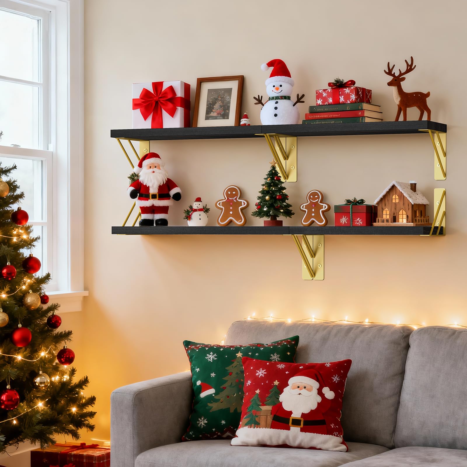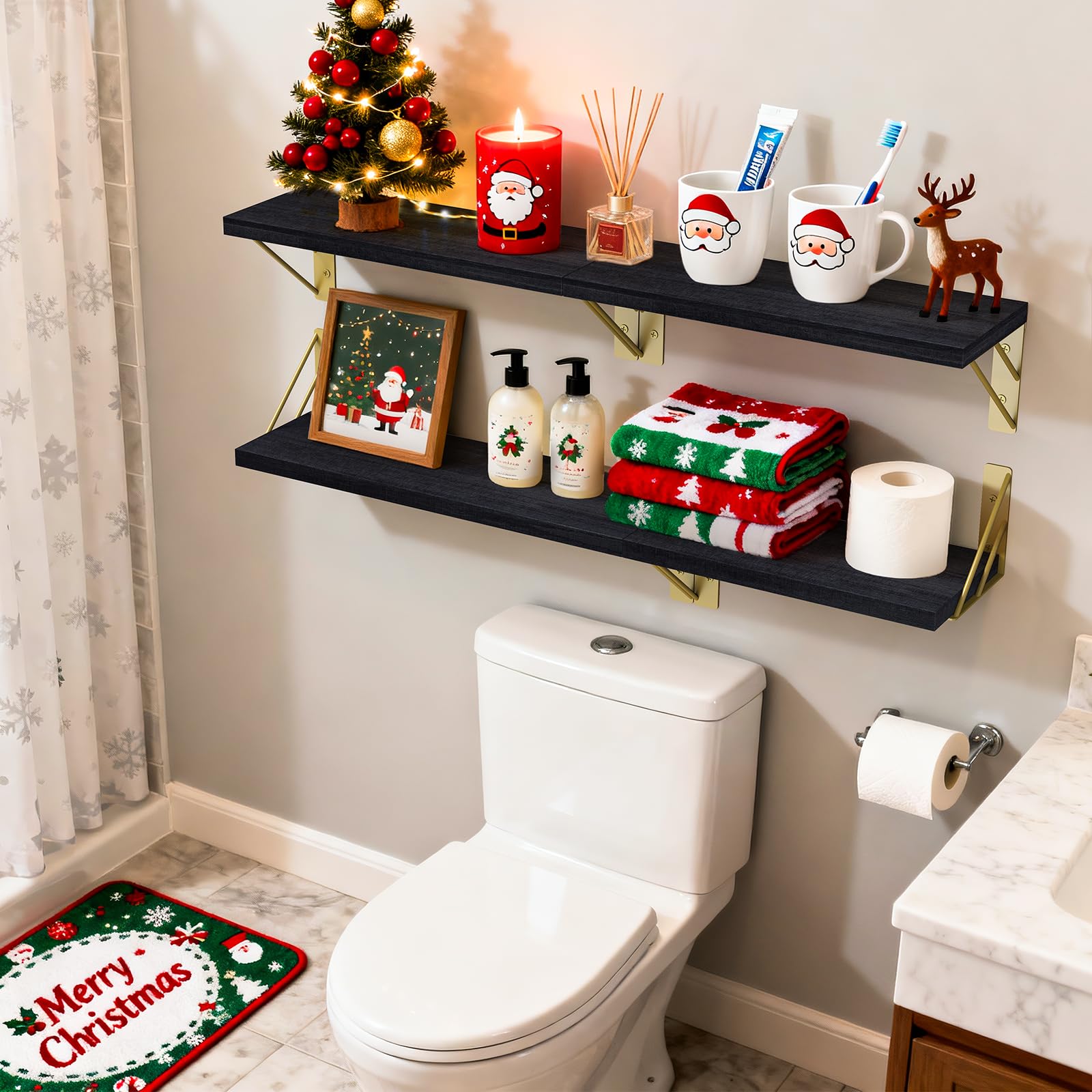 Organize your space with our wall mounted shelves. These Black Gold shelves are perfect for bedrooms, bathrooms, or living rooms. With their sleek design and easy installation, they are ideal for any room, providing both practicality and a stylish touch