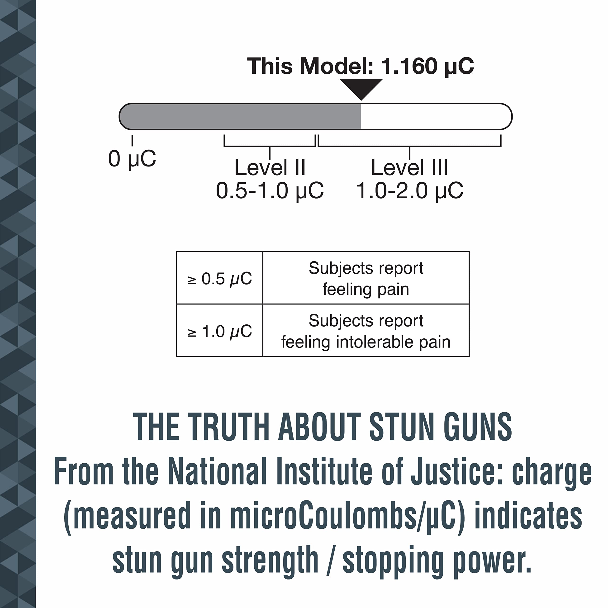 EXTREME STOPPING POWER: Maximize your self-protection when faced with an attacker with the stun gun's painful 1.160 µC (Microcoulombs) charge; Safety switch prevents accidental discharge