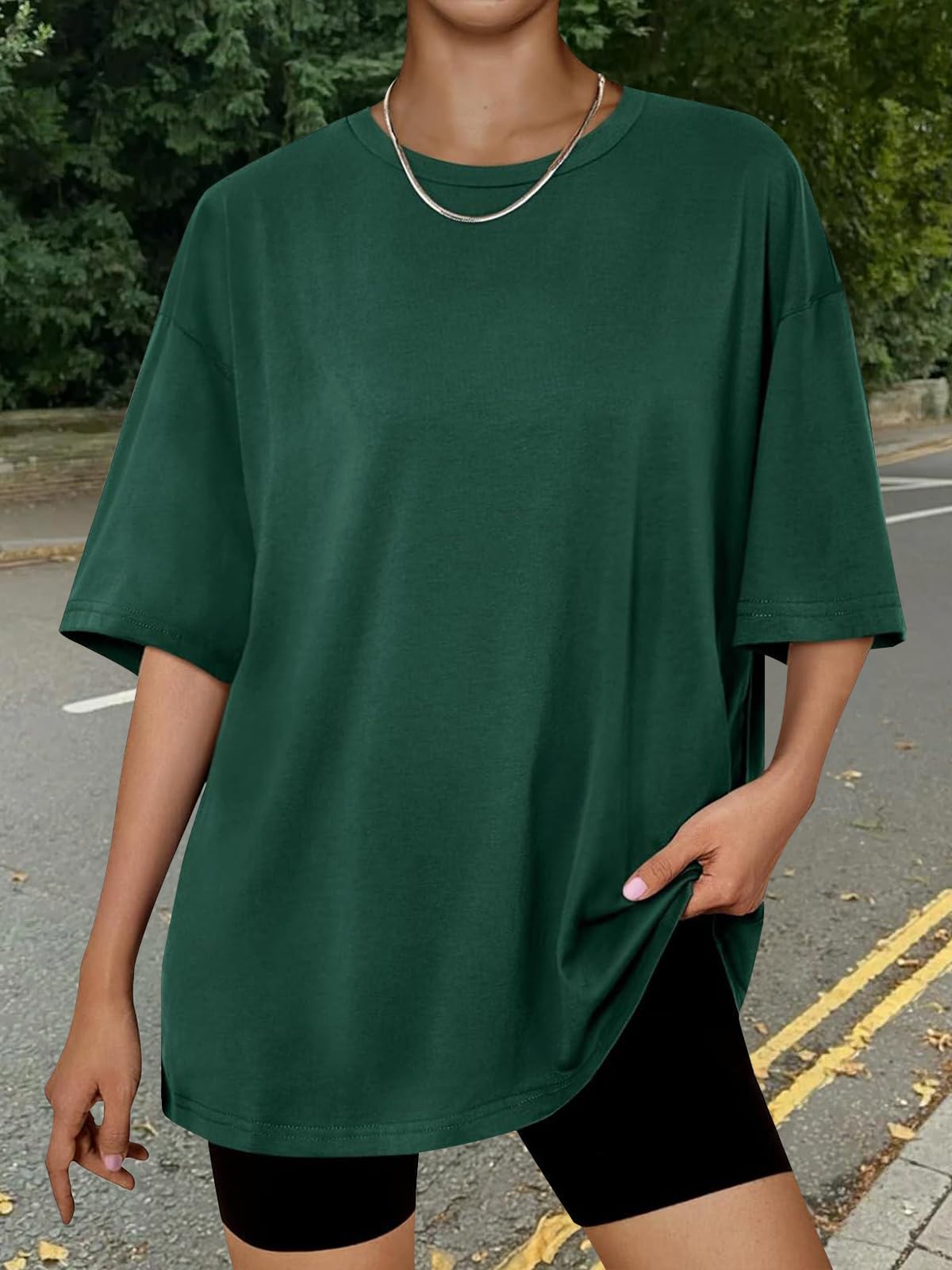 Design:Short sleeve shirts,round neck,loose fit tops,oversized casual blouse,solid color never out of style,easy to match with every style.