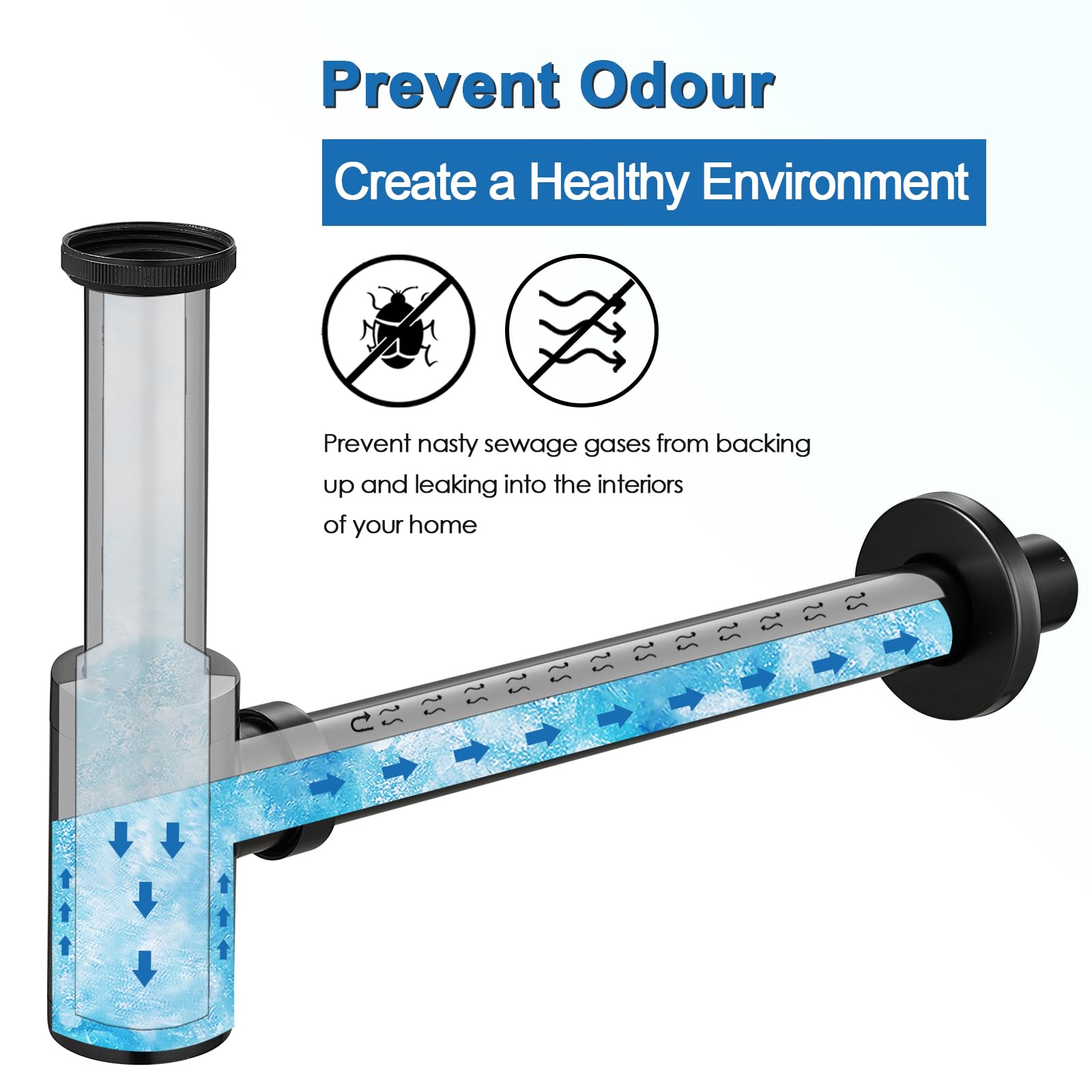 【Premium Material】Bottle Trap is crafted from high-quality solid brass and stainless steel pipe to ensure excellent performance and long-lasting durability. It is more durable than plastic and alloy, offering better resistance to corrosion and rust.