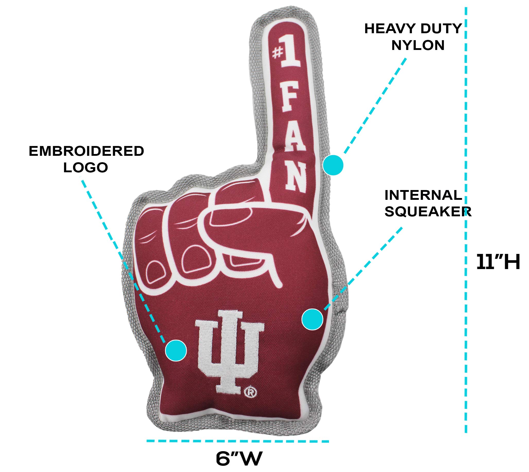 FEATURES: The Pets First foam finger shaped #1 Fan Toy features your favorite Collegiate TEAM NAME and LOGO in vibrant team colors! Double stitched trim, Tough Nylon material Polyfilled with Chewable Materials.It has a squeaker too to keep your dog enthused all day long!