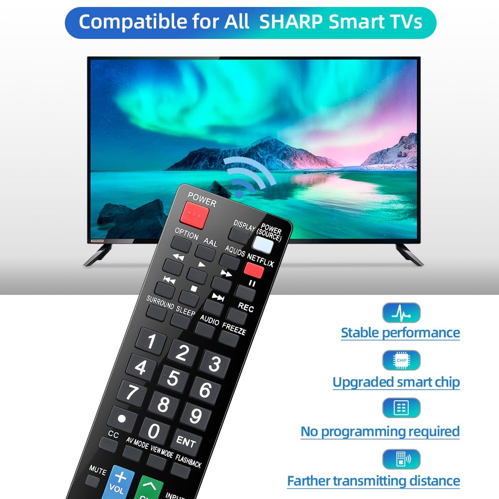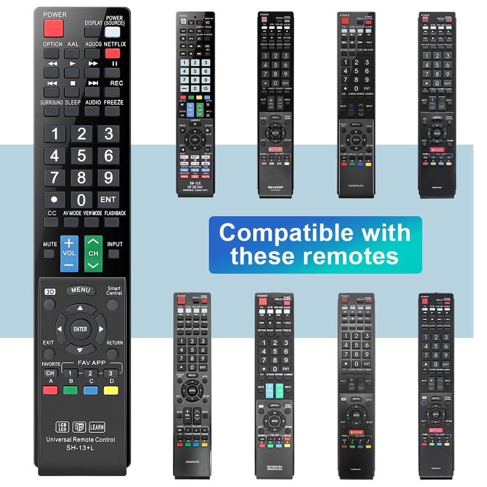 Gvirtue universal remote control compatible replacement for Sharp AQUOS Smart TV/ HDTV/ 3D/ LCD/ LED. Applicable various Sharp brand models: LC70LE657U LC70LE745 LC70LE745U LC70LE757U LC70LE845U LC70LE847 LC70LE847U LC70LE857U LC80LE657U and more.