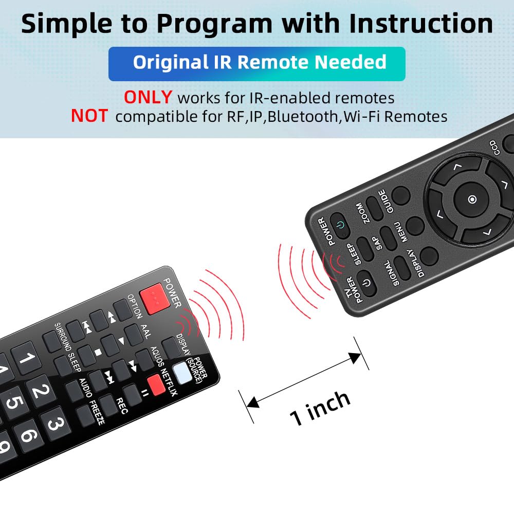 Work right out box without any programming for 99% Sharp TV. For another 1% Sharp TV, the remote can be setup simply and easily with instruction.