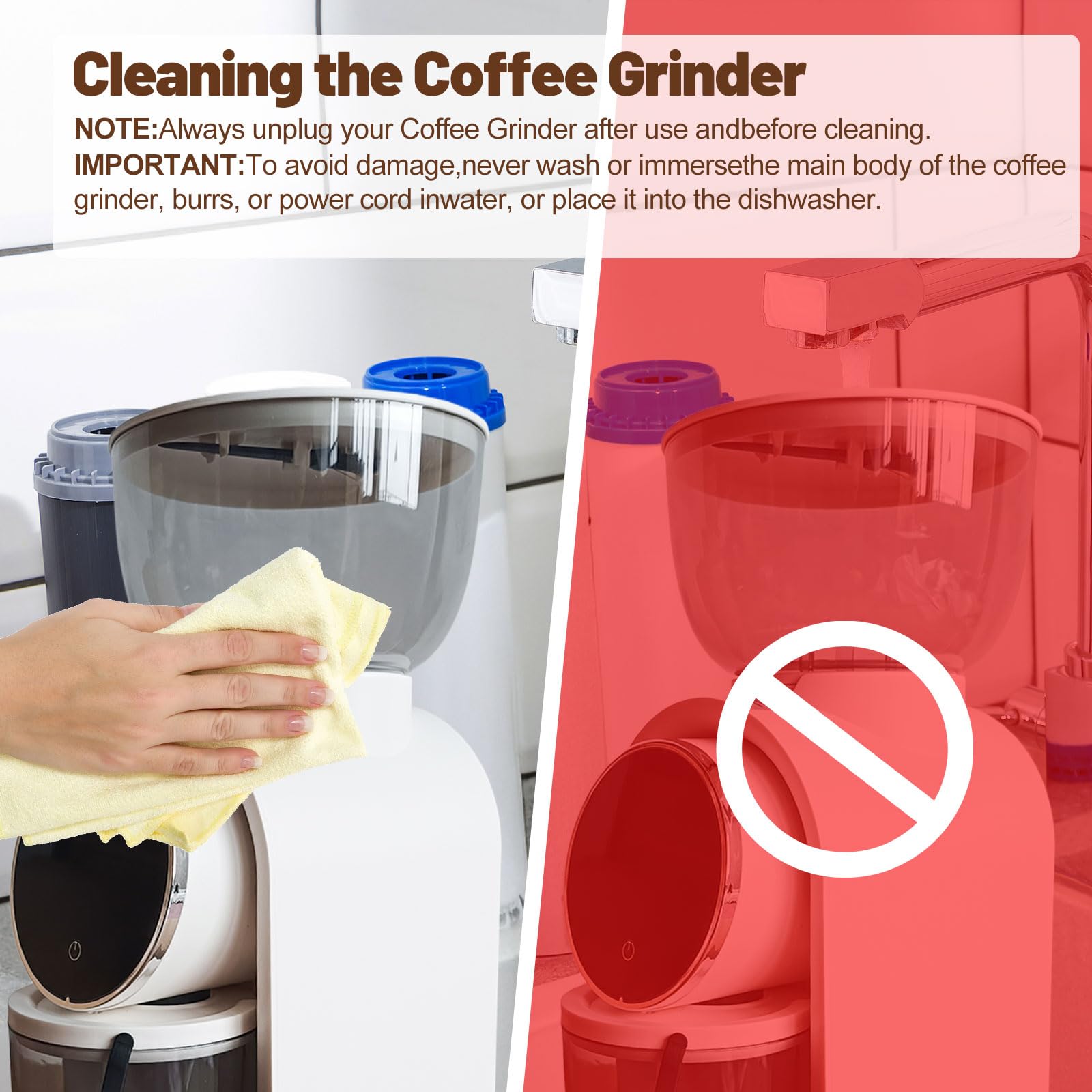 Easy to Clean and Maintain:Our electric coffee grinder is designed for easy cleaning. Removable Bean Hopper, upper burr, and cleaning brush included (under Bean Hopper Lid) for effortless cleaning.The Porta - Filter Holder and Grinding Chamber can be easily removed, and you can use the included cleaning brush to get rid of any coffee residue quickly. This ensures that your grinder is always in top - notch condition, ready to produce fresh and delicious coffee whenever you want