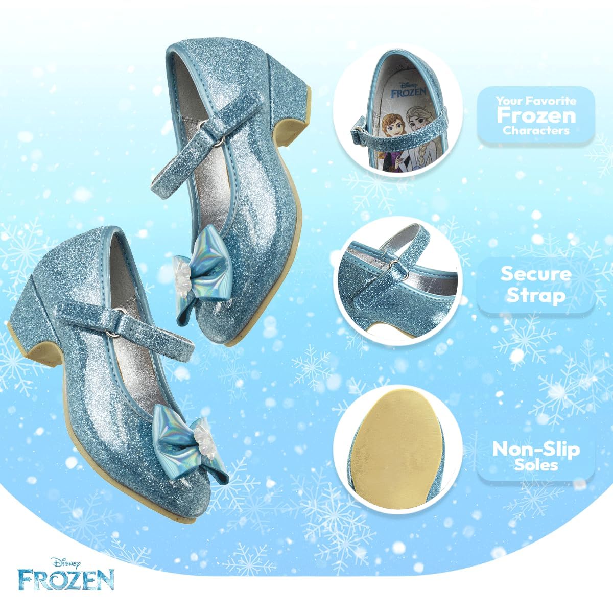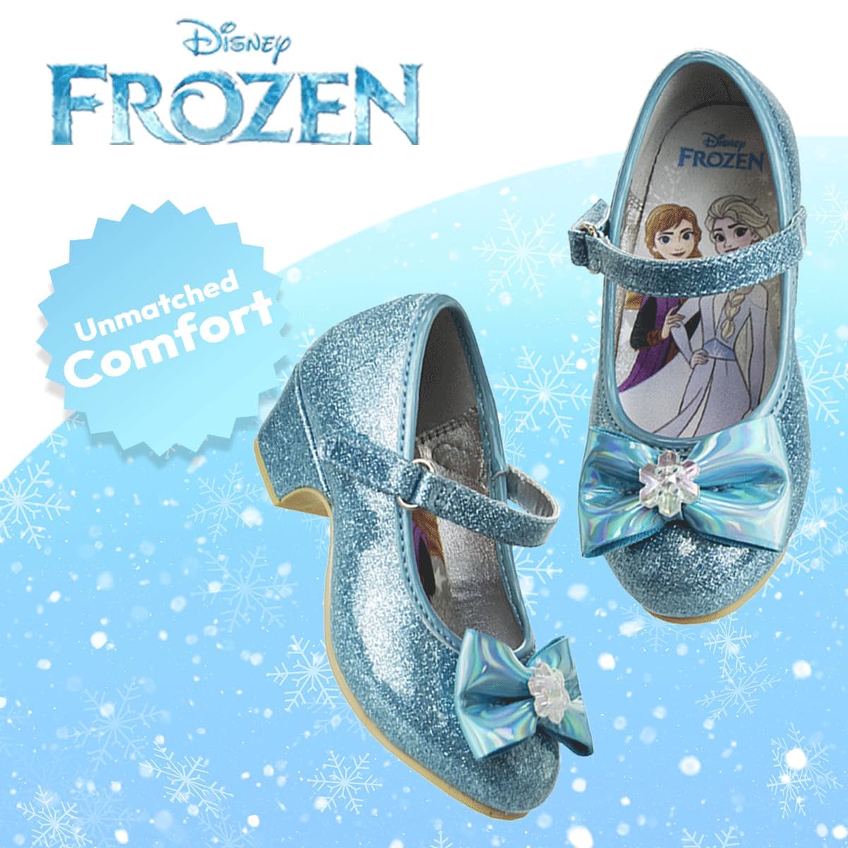 FROZEN KIDS GIRLS DRESS SHOES: These blue costume toddler shoes are designed with Frozen prints. Frozen Anna and Elsa shoes for toddler girls are great for dancing, costumes, weddings, and other events.
