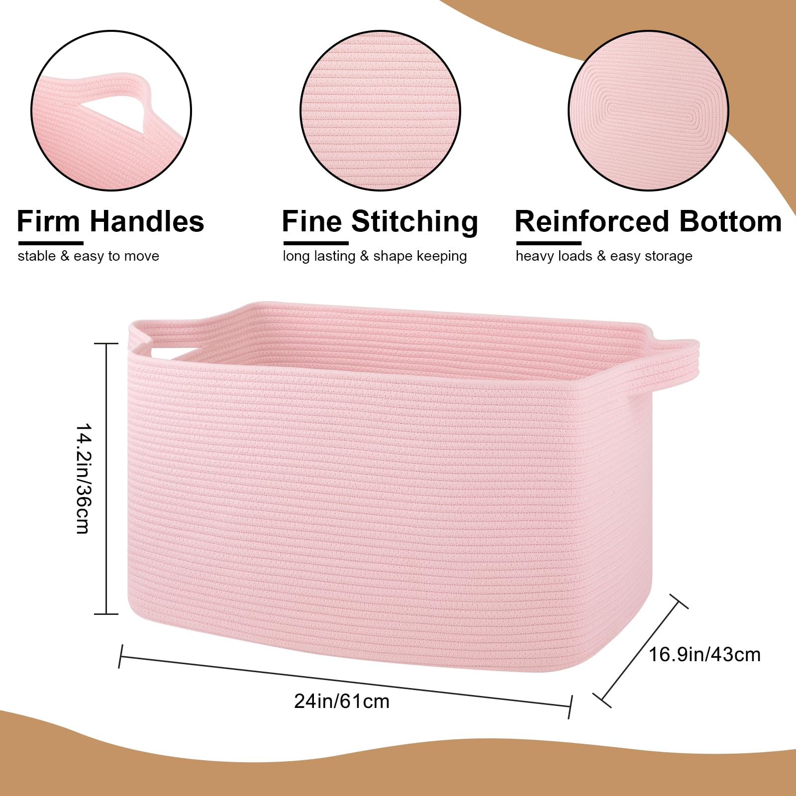 Extra Large Basket for Blankets: 24"L x 16.9"W x 14.2"H, this storage basket with 95L large capacity is perfect for storing blankets, pillows, toys, clothes and stuffed animals. Making your blanket storage for living room becomes easy and convenient