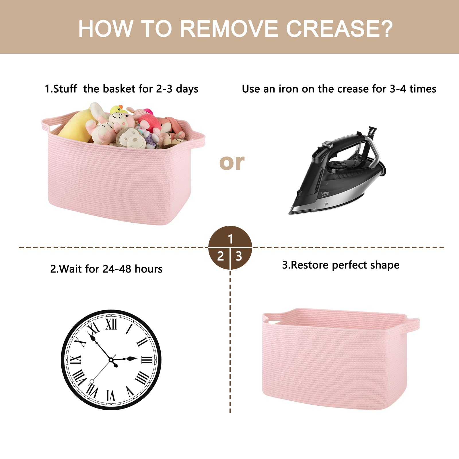 Important Note: The premium woven storage baskets are packed compact for shipping, you may find some crease on the item, you can fully stuff the pillow basket with towels or clothes to restore shape. Or fast smoothing the creases by steaming or Ironing
