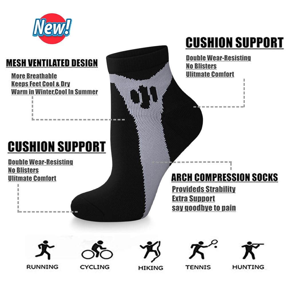 Breathable & Moisture Wicking – Made with copper fibers and ventilated mesh, our ankle support socks keep your feet dry, fresh and odor-free, preventing blisters even during long hours of wear