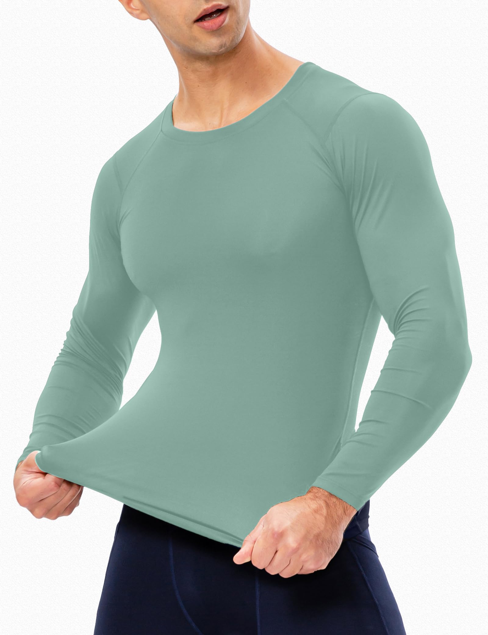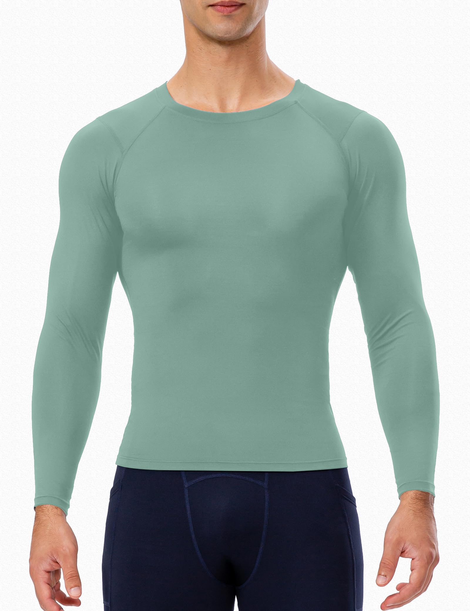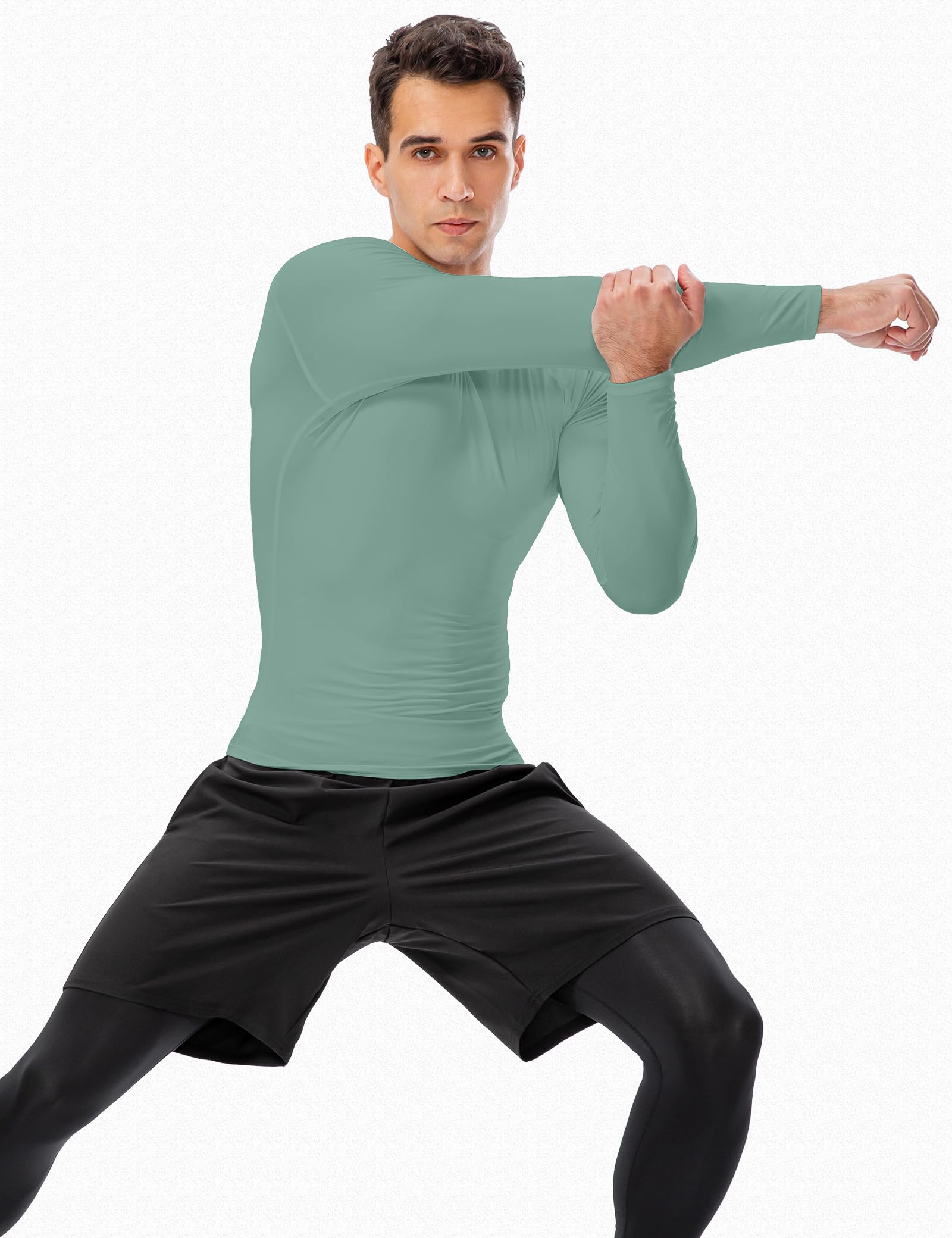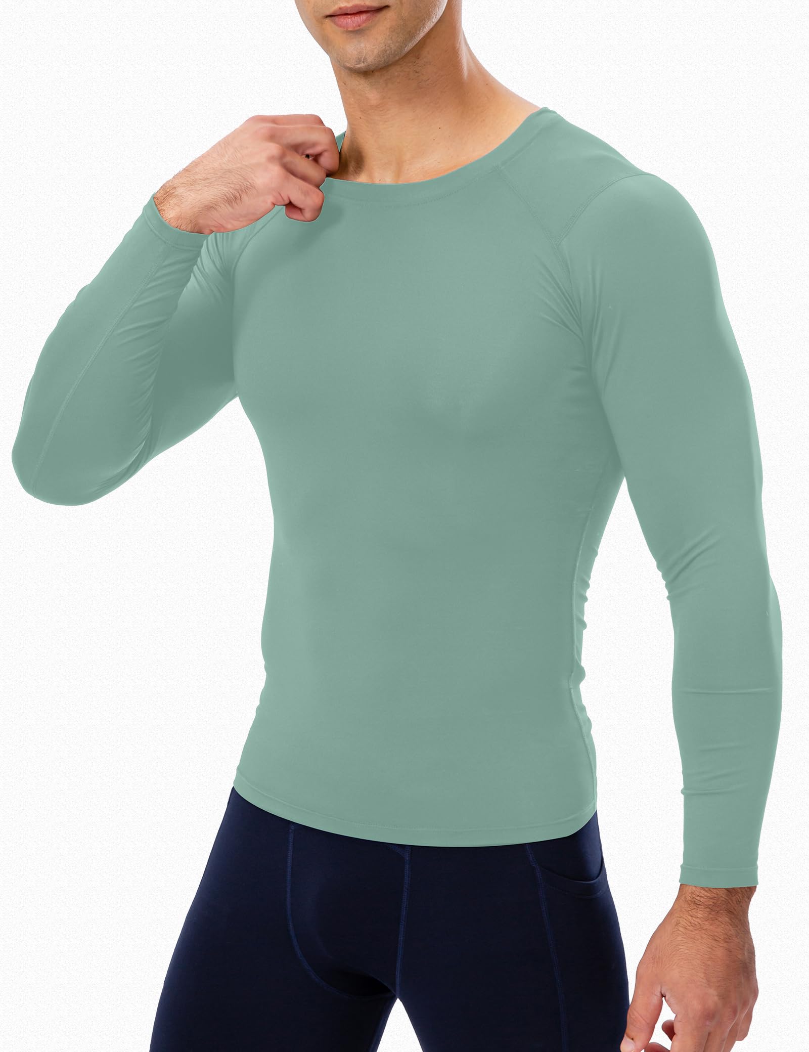 Performance Tight Shirts: Superior elasticity compression long sleeve shirt feature ergonomic 4-pin flat lock seams that give you better movement in all directions without worrying about friction. Crewneck compression shirt men long sleeve increase more flexible