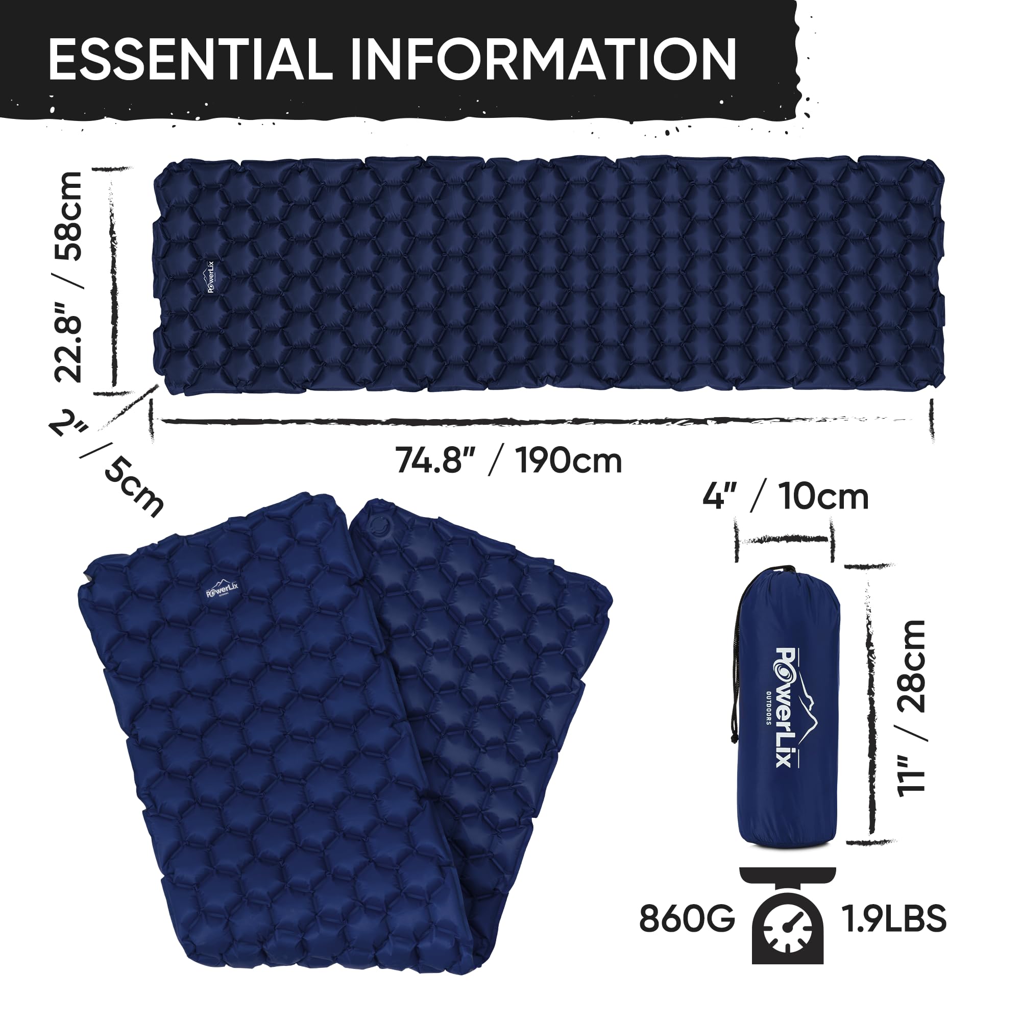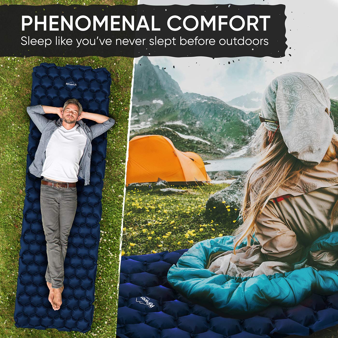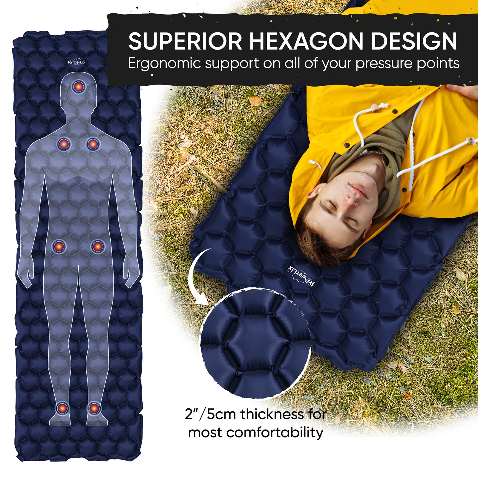 REJUVENATE YOUR BODY: Powerlix camping pad has revolutionary hexagon design made with body mapping technology. The hexagon air cells ergonomically support all of your pressure points, giving you superior support and comfort all night long, no matter how you sleep! The sleeping mat is also a camping gear must haves luxury, being comfortable yet lightweight. It rolls up small, making it effortless to carry around. The cot comes in a variety of color choices, sure to match anyone's personality.