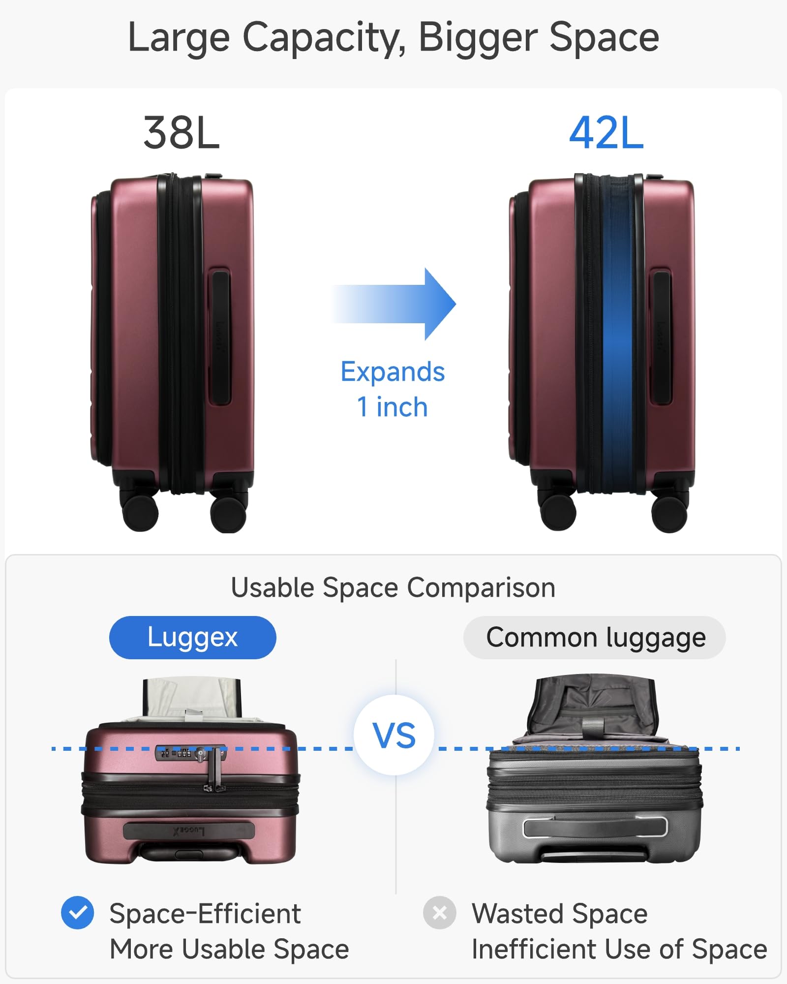 【All-in-One TSA Security】Crafted as premium travel luggage, it comes with a durable 100% polycarbonate hardshell and buttery-smooth 360° silent spinner wheels for effortless maneuvering. For enhanced peace of mind, we’ve introduced a TSA-approved dual-zone lock that securely locks both the front laptop compartment and main luggage area—an innovative design that sets LUGGEX apart in travel protection.