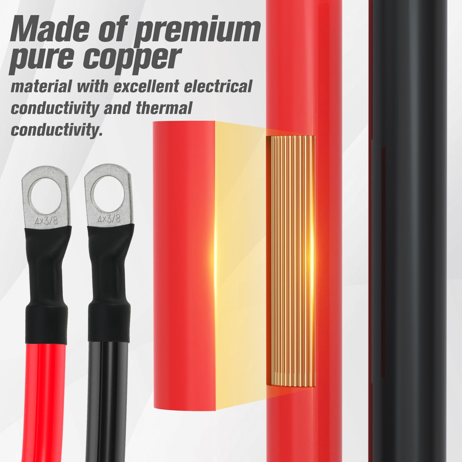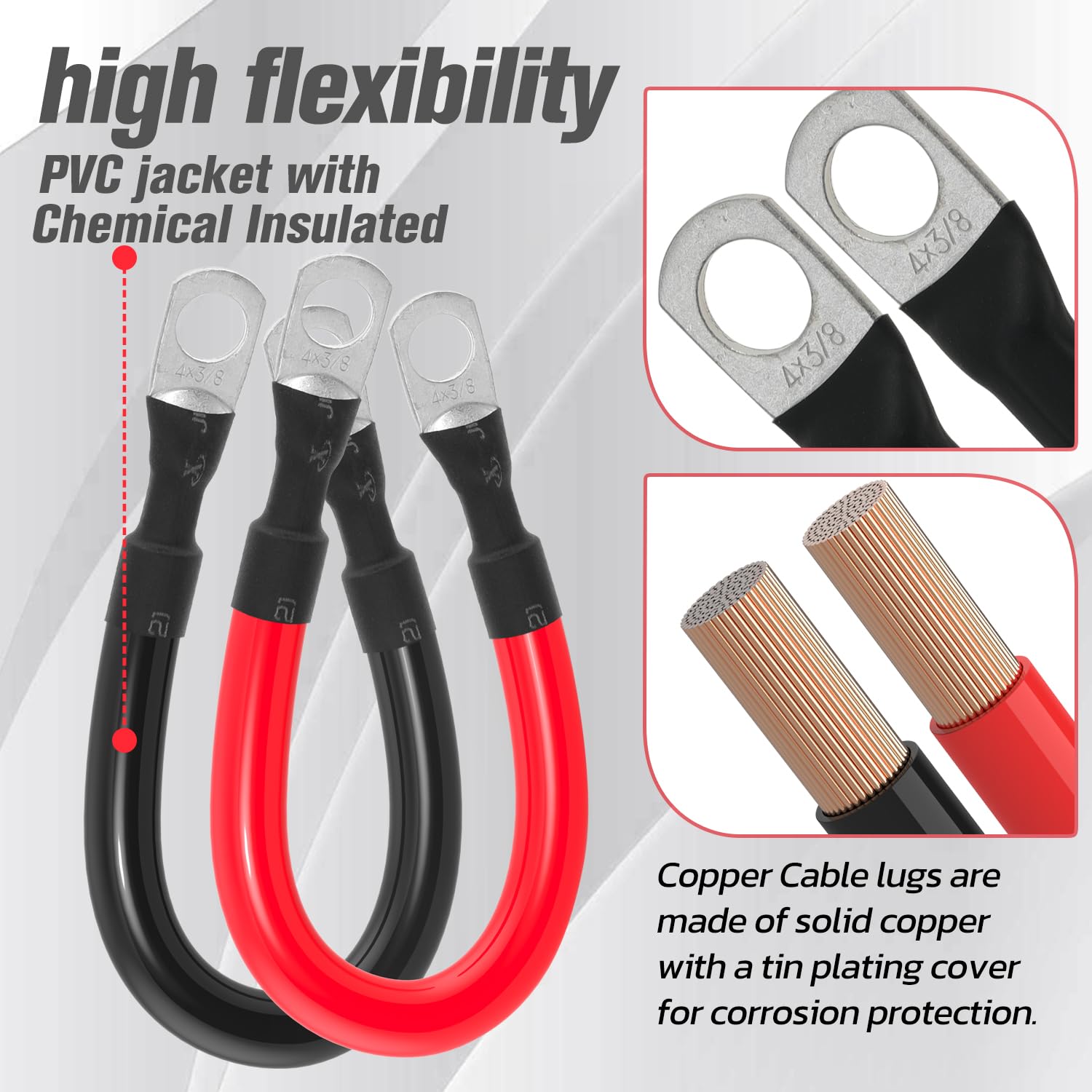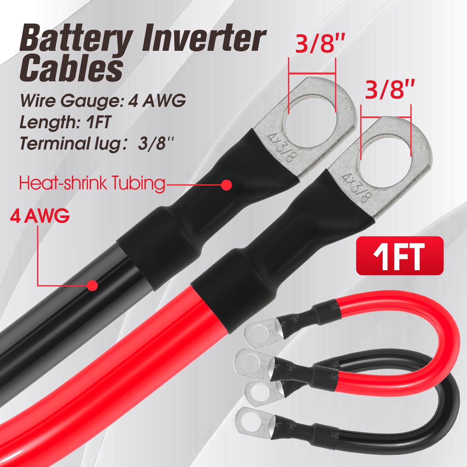 Wire Gauge: 4 AWG; Length: 1FT; Terminal lugs: 3/8"