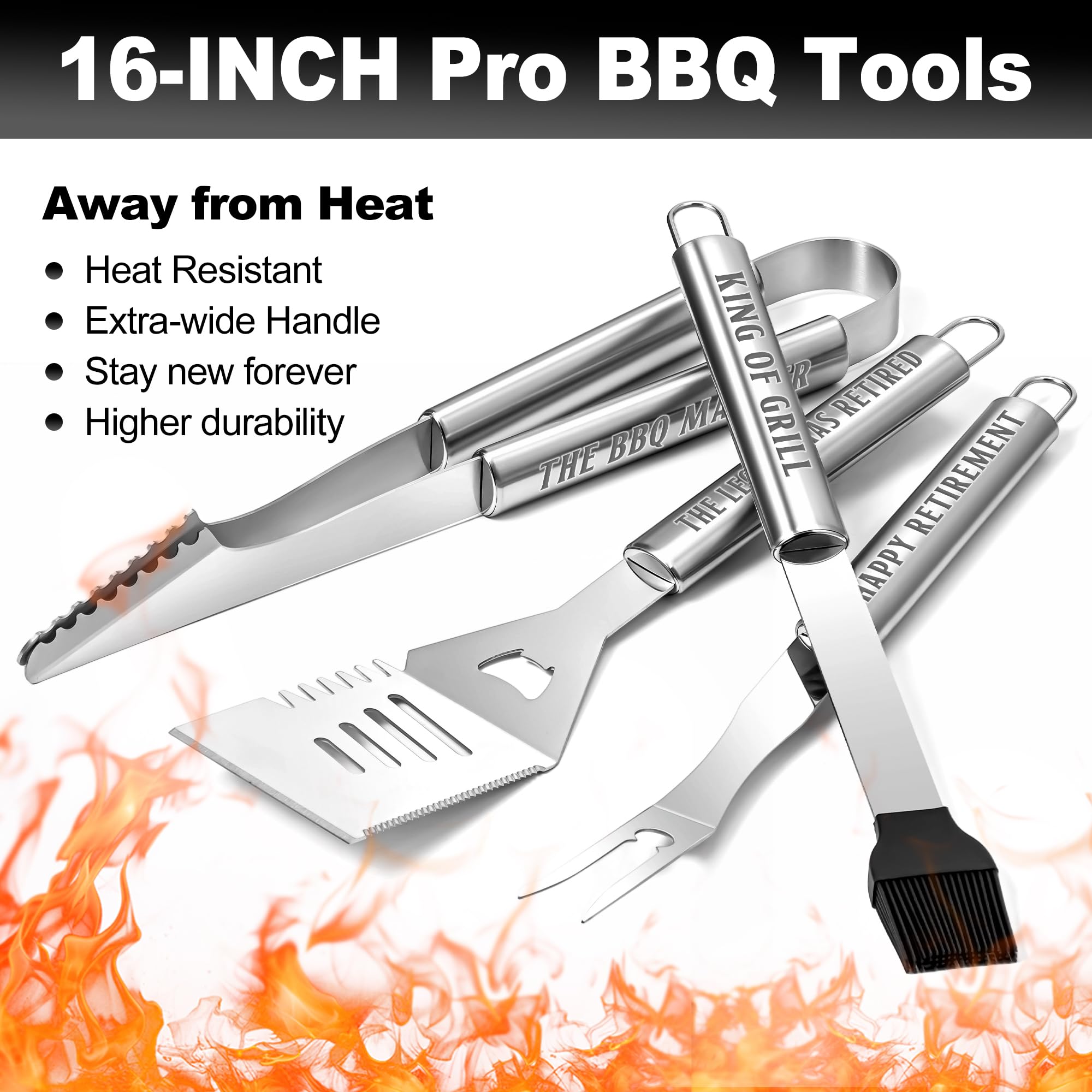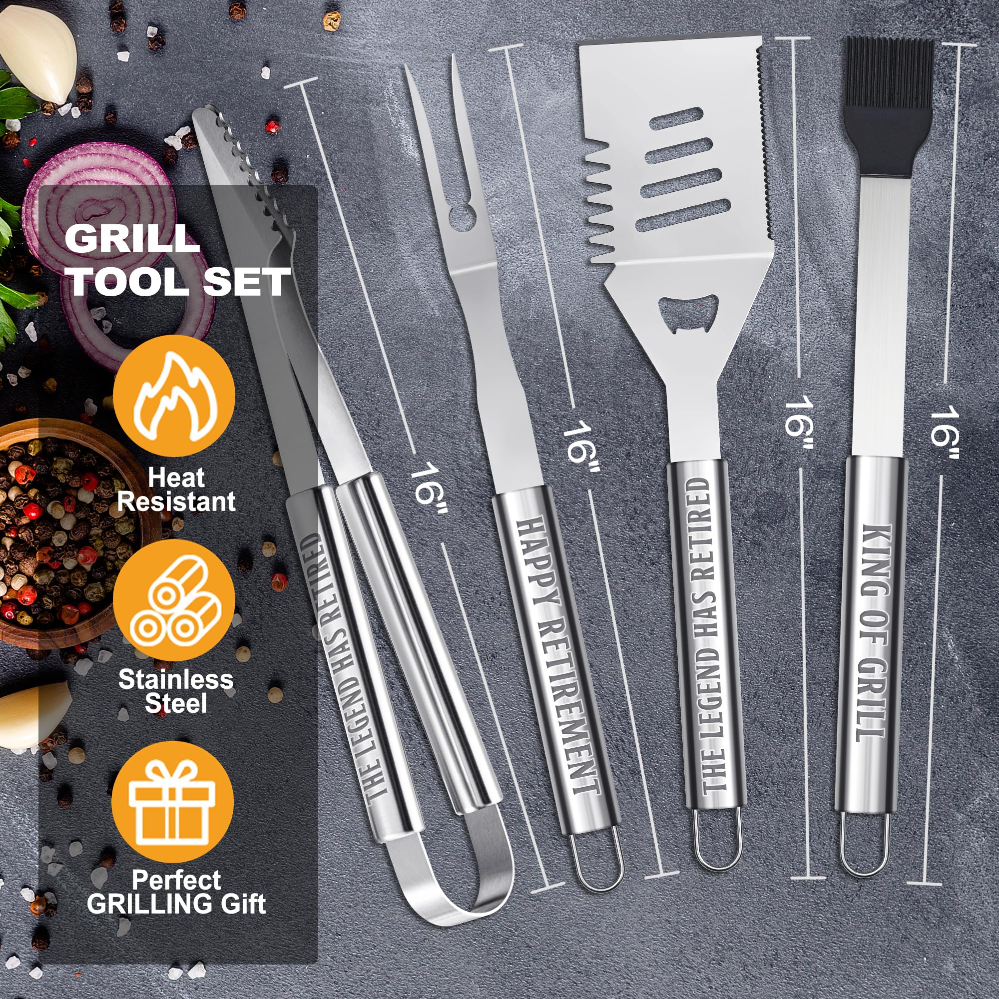 Retirement Gifts for Men, Retired Gifts for Men, Dad, Grandpa, Coworker, Teacher, Boss, Grilling Accessories, Heavy Duty Stainless Steel Grill Set BBQ Grill Tools for Outdoor Grill with Aluminum Case