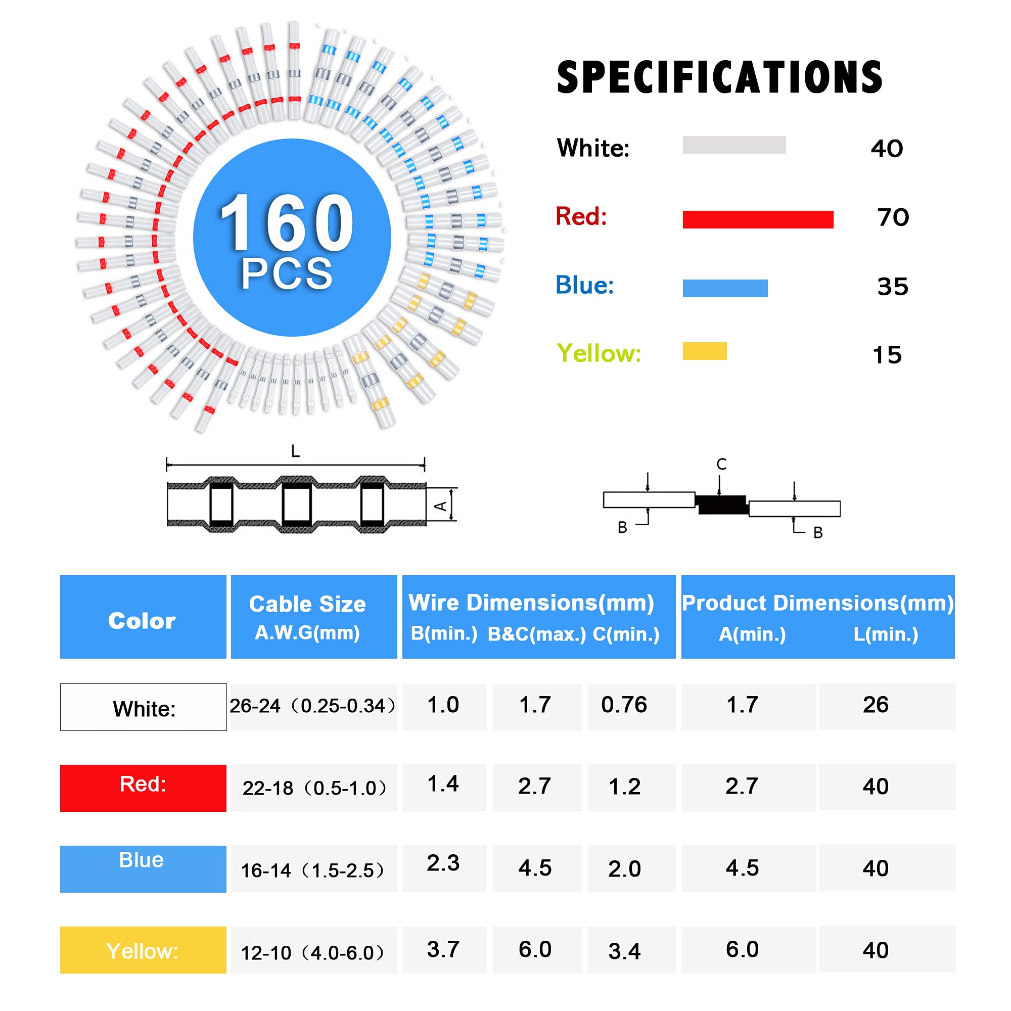 Waterproof and Seal Performance: There is two hot melt waterproof adhesive rings in each butt connector, which help it hold up better to moisture