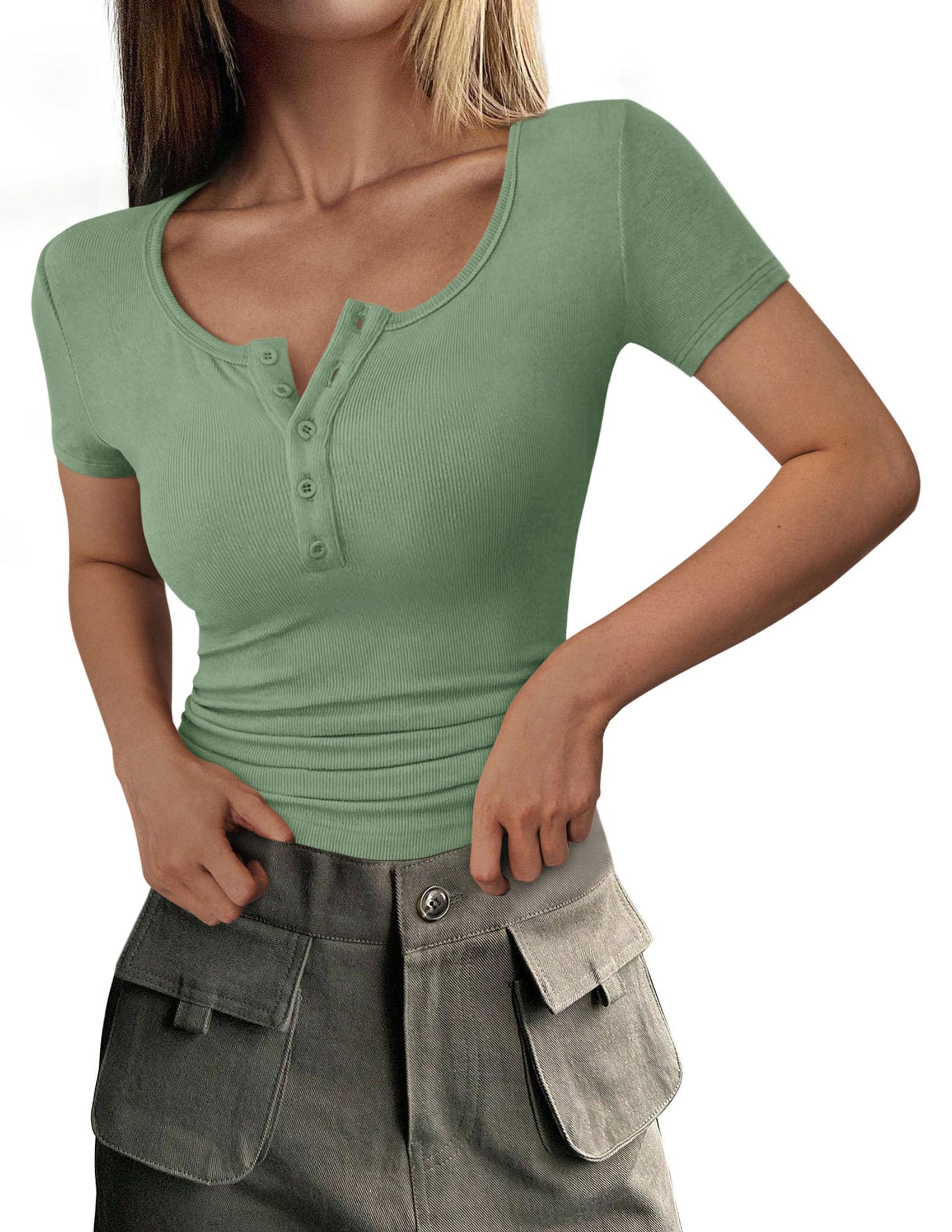 Features - Womens summer tops are designed with ribbed knit, scoop neck, short sleeve, slim fit. Suitable for daily wear, home, work, street wear, party, dates, vacation, shopping, cafes and other casual occasions.