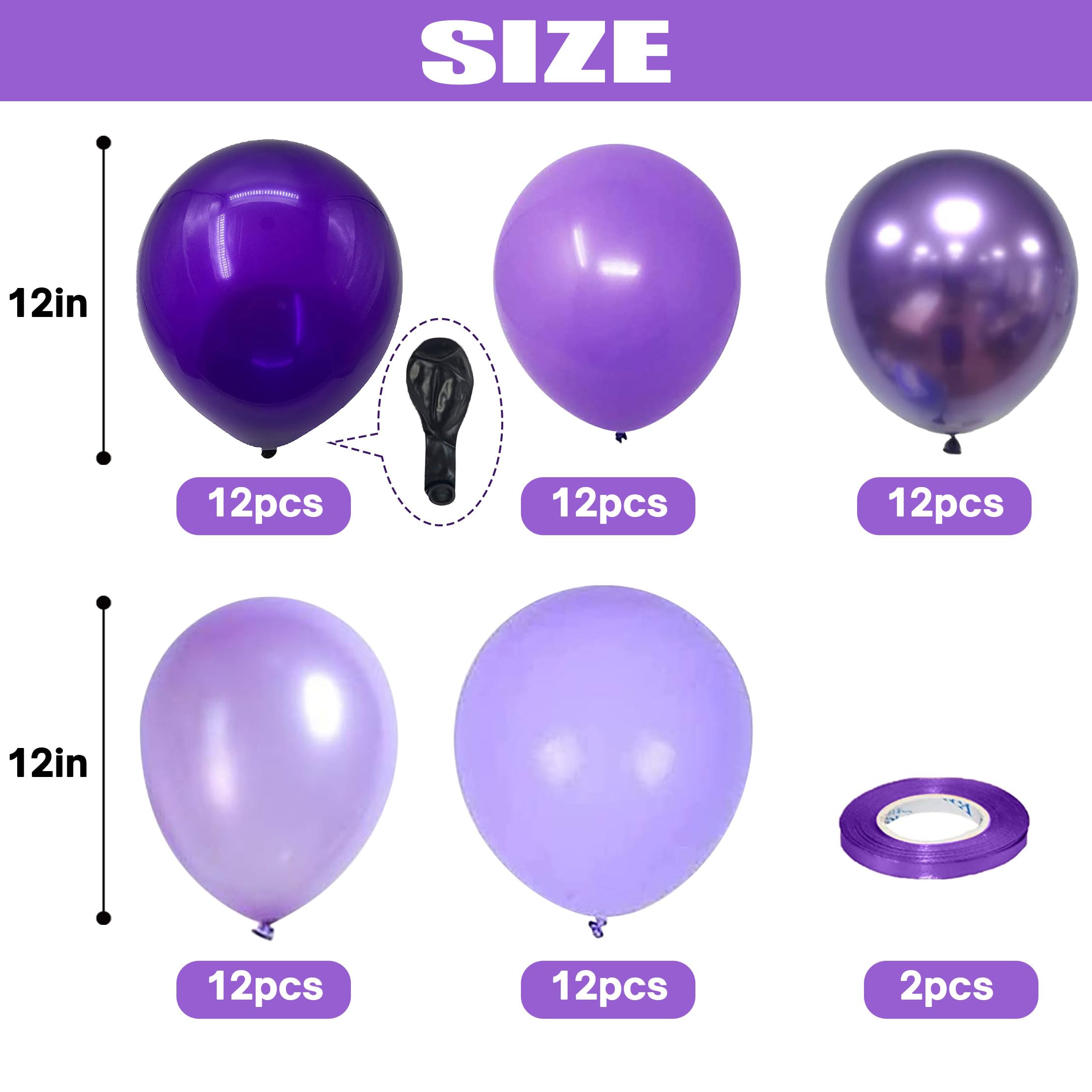 💜【Different Shades of Purple Balloons】: 60 balloons and 2 ribbons. All our party balloons are shipped in vacuum packaging to prevent them from being oxidized during transportation.