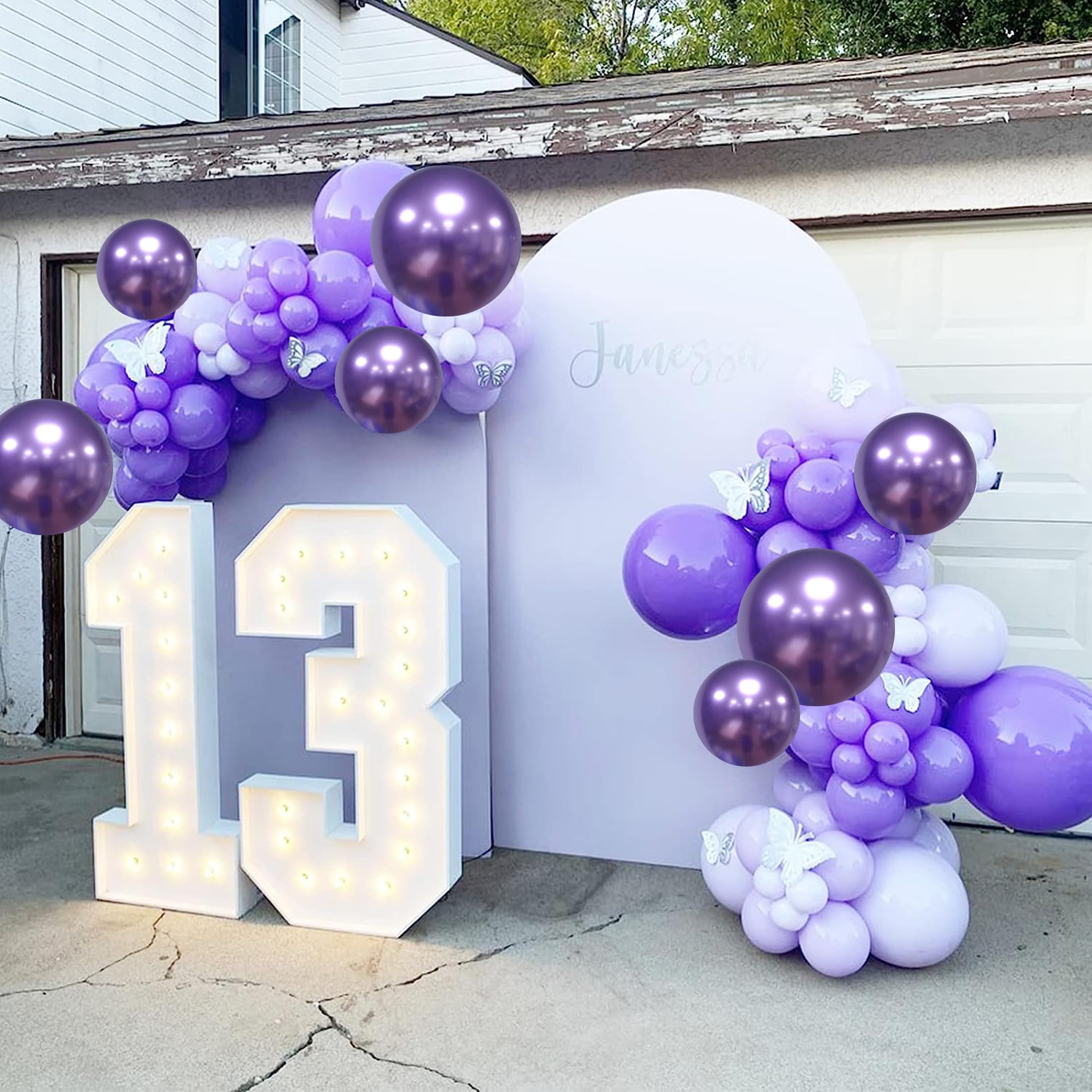💜【Wide Application】: Balloons are very suitable for birthday, graduation, anniversaries, baby showers, weddings, company events, photo shoots, etc. Decorate any indoor or outdoor party as a photo booth background and create lasting memories.