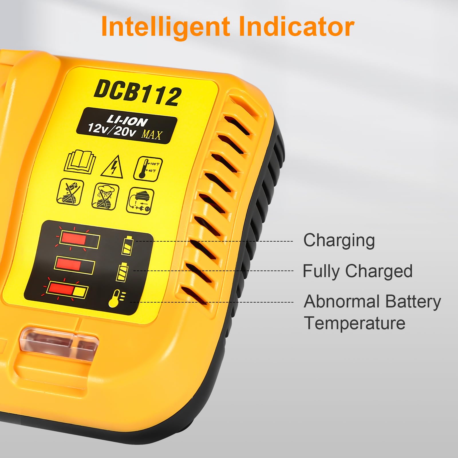 Wide Compatibility: Replacement for dewalt battery charger supports 100-260V, which is 100% compatible with dewalt 20v battery DCB123 DCB125 DCB203 DCB204 DCB206 , etc. Excellent compatibility can meet the charging