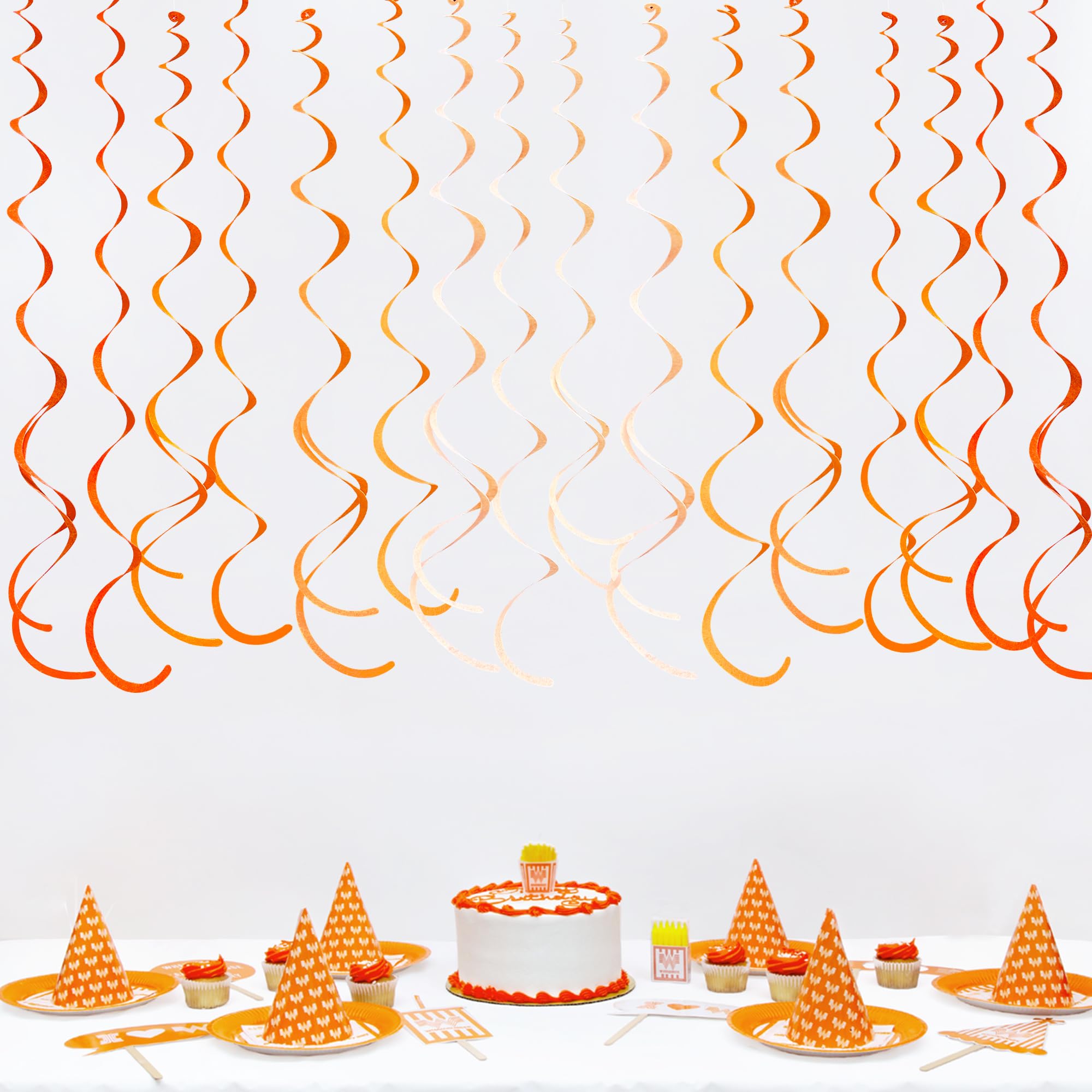 🧡Package Contains - 36 packs of orange ombre color swirl party streamer,Each swirl can extends to approximately about 2.62 feet long,Meeting daily general needs.Comes with 40 plastic hooks for hanging.