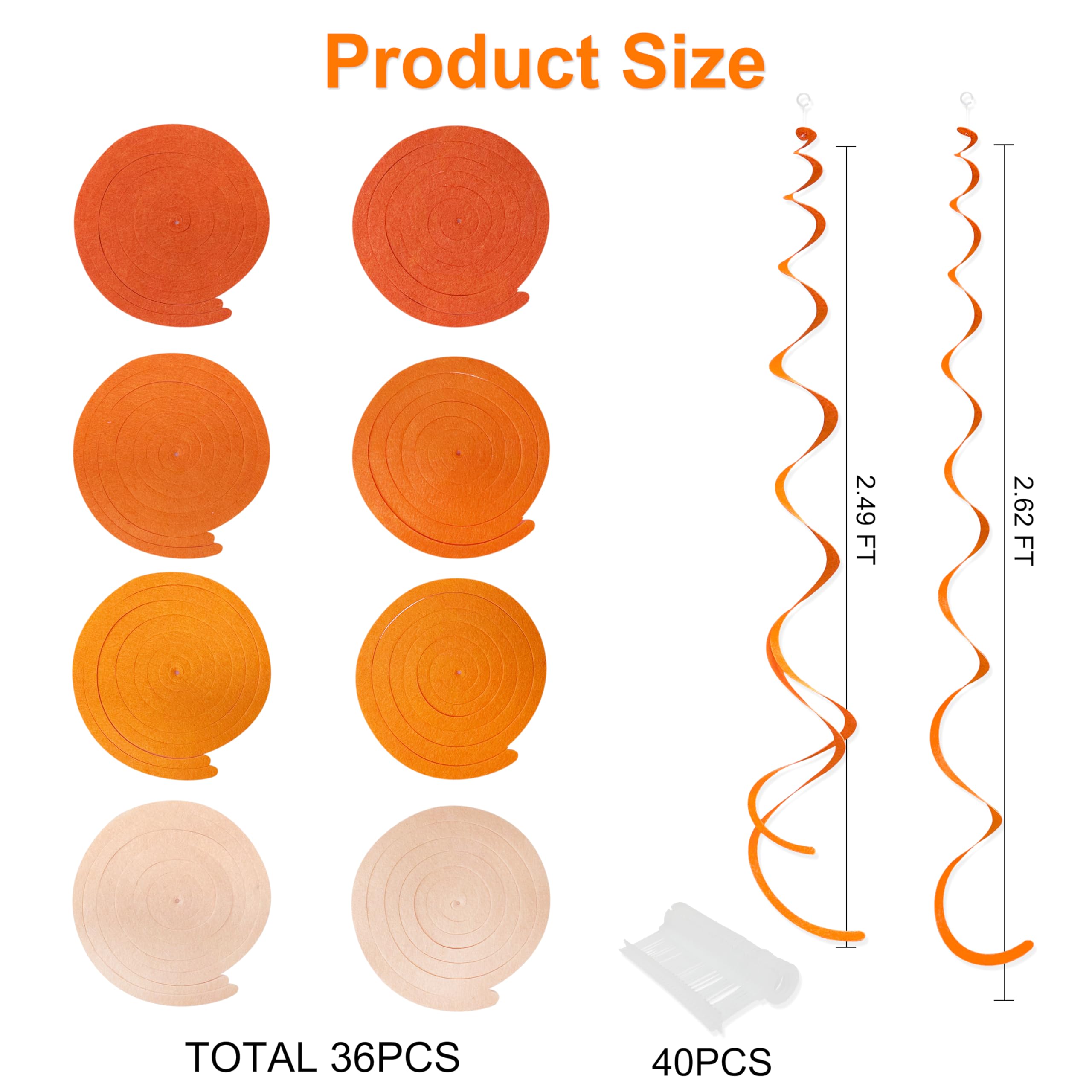 🧡High Quality - Our felt swirl hanging decorations kit are made of high-quality felt in gradient orange color(dark orange,bright orange,pale orange,coral),Soft texture and safer than PVC swirls.durable and reusable.and the color is more brilliant than general PVC whirls.