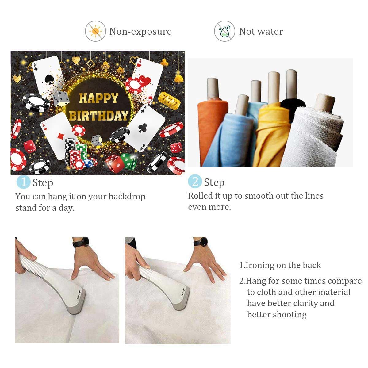 ❤About BUTEN: product: ★1. Material:Thin Vinyl plastic cloth(not washable). ★2. Light absorbant Non-reflective.No pocket. ★3. Computer-printed for realism. ★4. Silky touch,Send by folded. Use: It is suitable for wedding,baby shower,event party, baby shower photocall, birthday party, festivals, TV live, YouTube video,kids and some other decors etc. Packaging: ★1.1PCS Pro Polyester backdrop.No pocket; No Stand; Pole Pocket or Clips NOT Included.Send by folded. ★2.According to post office regulations, the length of the package cannot be too long, and we can only fold it for delivery. There will be slight creases in the background, you can eliminate the creases according to the prompts! solution: 1: Roll it up tightly with a cylinder, and wait for 3-4 days 2: Hanging still for a few days 3: Use a dry cloth to set off the back of the background, then use a steam iron to iron the back, but do not use a dry iron Instructions: ★1. Fix the background to the wall with nails or tape. ★2. Or use stand and clamps to support it. Custom Service Notes: ★1. We can custom any size for you(9x6ft,8x8ft,10x10ft),also we can print your own picture. ★2. Please send us your customized information through Amazon message.The size, word (name) and the time you want to get,or other parts you want to Change.We will send you a design rendering and a custom purchase link. ❤Dear customers: If you have any questions, please contact us, we will give you a satisfactory answer in a short time. Your suggestions will make us do better and make you more satisfied. Thank you!