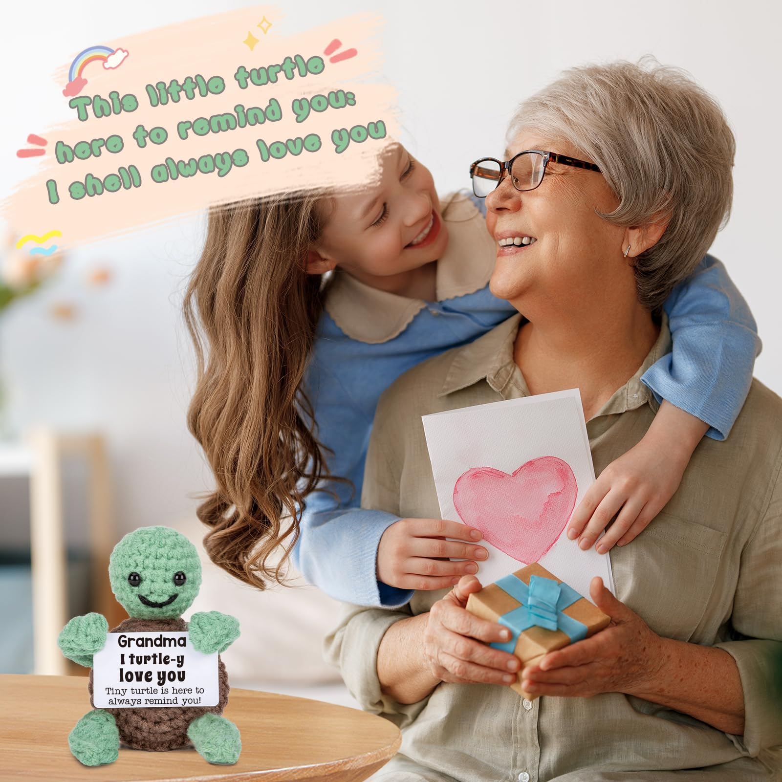 Grandma Birthday Gifts: Each knitted turtle about 2.3 x 1.4 x 3.5 inches, matching with card, compact and fit perfectly in pockets or backpacks, easy to carry; Mini turtle acts as forever accompany will cheer you up and give you emotional active support