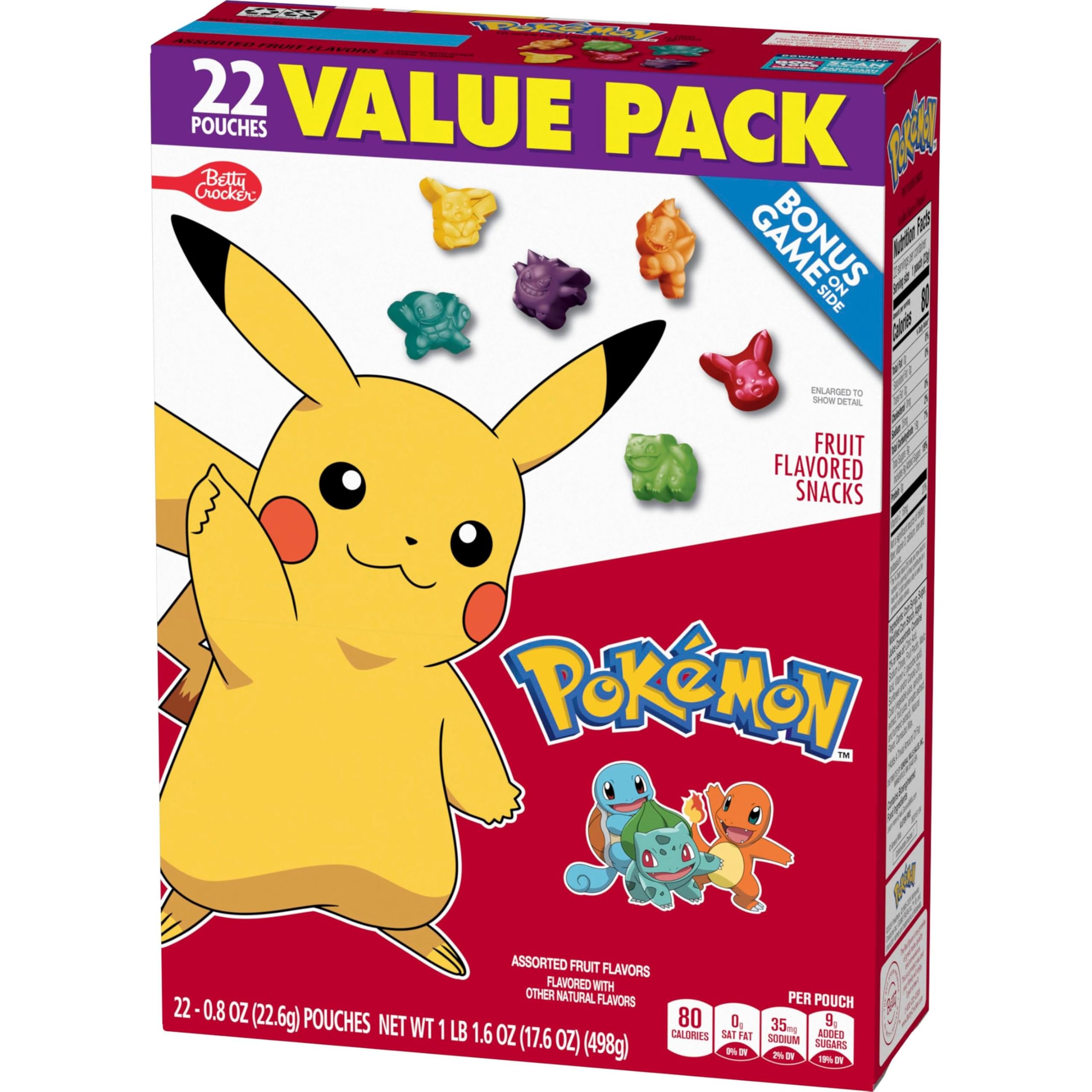 Contains one bulk value pack box of Pokemon Fruit Flavored Snacks, 22 pouches (17.6 oz total), for easy pantry storage and sharing