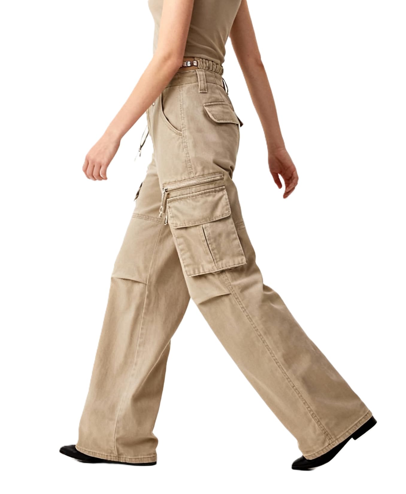 Design: Featuring a high waisted fit and multiple pockets, these cargo pants for women offer a trendy look with button zip fly and stitched seams for a functional design.