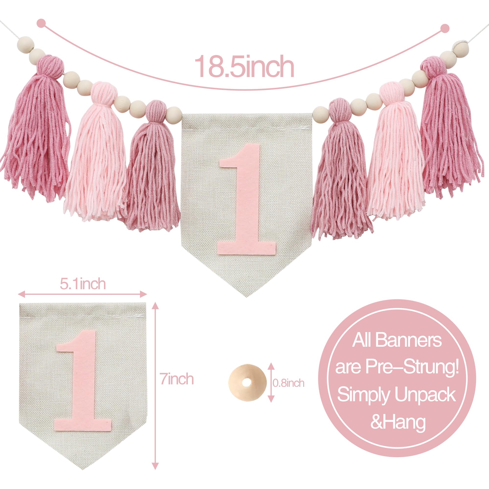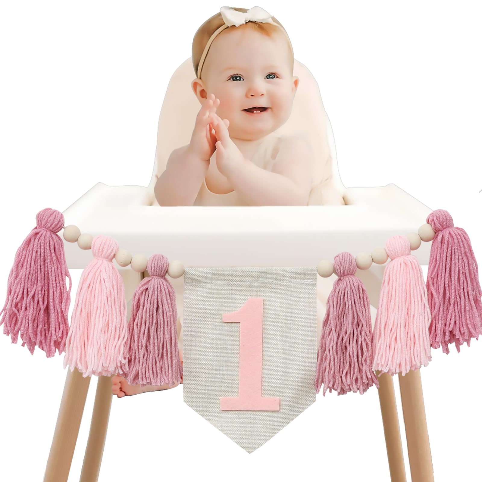 UNIQUE PRODUCT DESIGN: Our 1st birthday high chair banner girl is designed with soft tassel and wood beads; the baby party decorations will add a touch of elegance and fun to your baby's first birthday party; make your little baby the center of attention on this special day