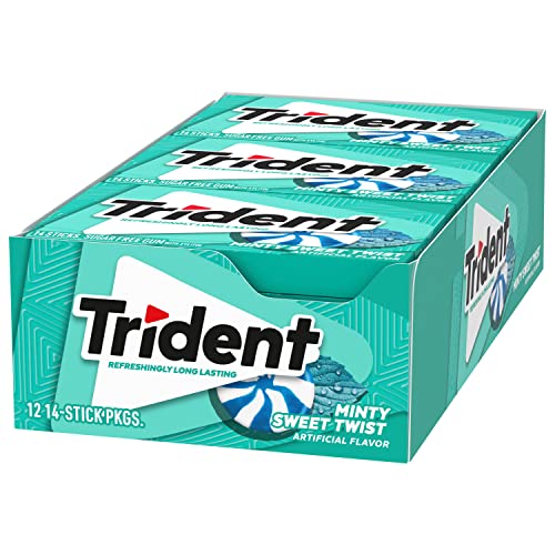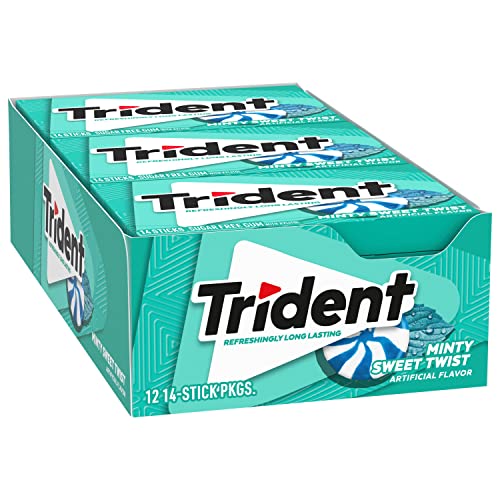 Twelve packs with 14 pieces each, 168 total pieces, of Trident Minty Sweet Twist Sugar Free Gum
