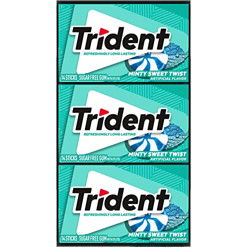 Trident Minty Sweet Twist Sugar Free Gum is a delicious way to get fresh breath and protect your teeth. Each time you pop a stick of sugar free mint gum in your mouth, the burst of flavor is like mint gum gave you a kiss on the cheek and told you “Have a good day, sweetie!" With 30% fewer calories than sugared gum, Trident sweet mint gum is sweetened with xylitol, a naturally occurring sugar alcohol. The ADA Council on Scientific Affairs found that the physical act of chewing Trident sugarless gum for 20 minutes after eating stimulates saliva flow which helps to prevent cavities by reducing plaque acids and strengthening teeth. Bulk gum packs give you plenty to share at home or the office, or stock up on mint gum packs for party favors and Halloween treats. Each pack of gum is designed so the gum stays inside, making it easy to toss in your car, backpack or desk drawer. These sticks of sugar free chewing gum are individually wrapped for extra freshness and convenient sharing.