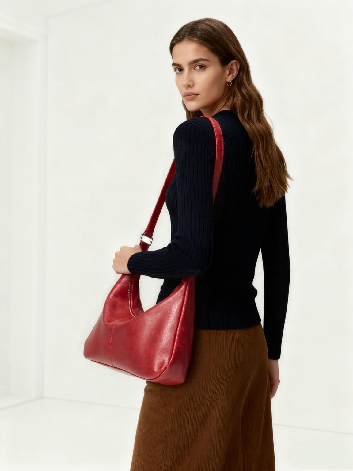 Effortless Burgundy Style: Minimalist slouchy hobo bag for women in a deep wine tone; rich burgundy bag that pairs with denim, coats, and dresses; wearable dark red purse that adds polish without trying; an elevated alternative to classic black for everyday, work, and weekend looks