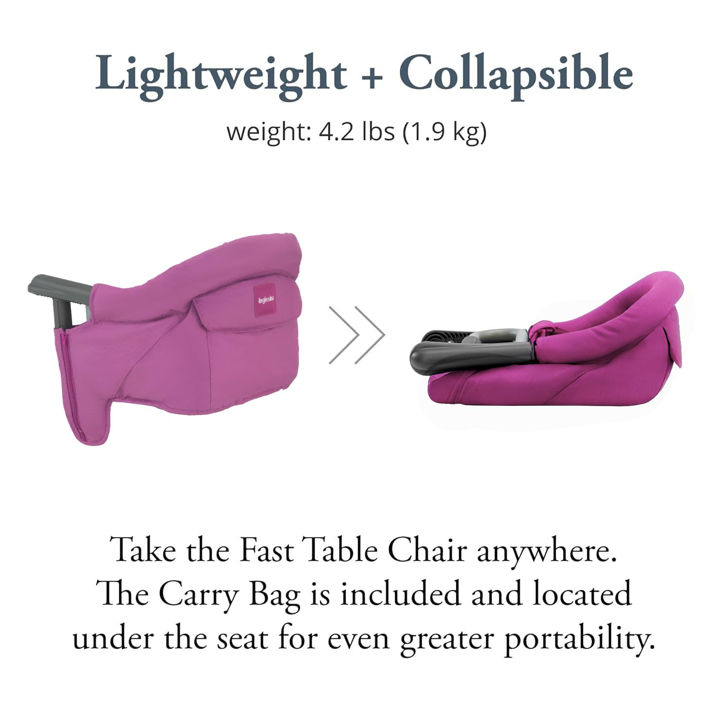 Right with you, side by side. Inspired by the Montessori principles of sharing and autonomy, the Fast Table Chair is the legendary, must-have table chair that is as comfortable as it is convenient. For use at home, while traveling or at the restaurant, parents love the Fast because of its simple, twist-tight couplings and its compatibility with most types of tables, leaving them scratch free. Fast is ultra-light, collapsible and easy to carry comfortably in the included carry bag. A convenient dining tray is available as an optional accessory. As all Inglesina products, the Fast Table Chair is free of regulated BPA, lead or phthalates.
