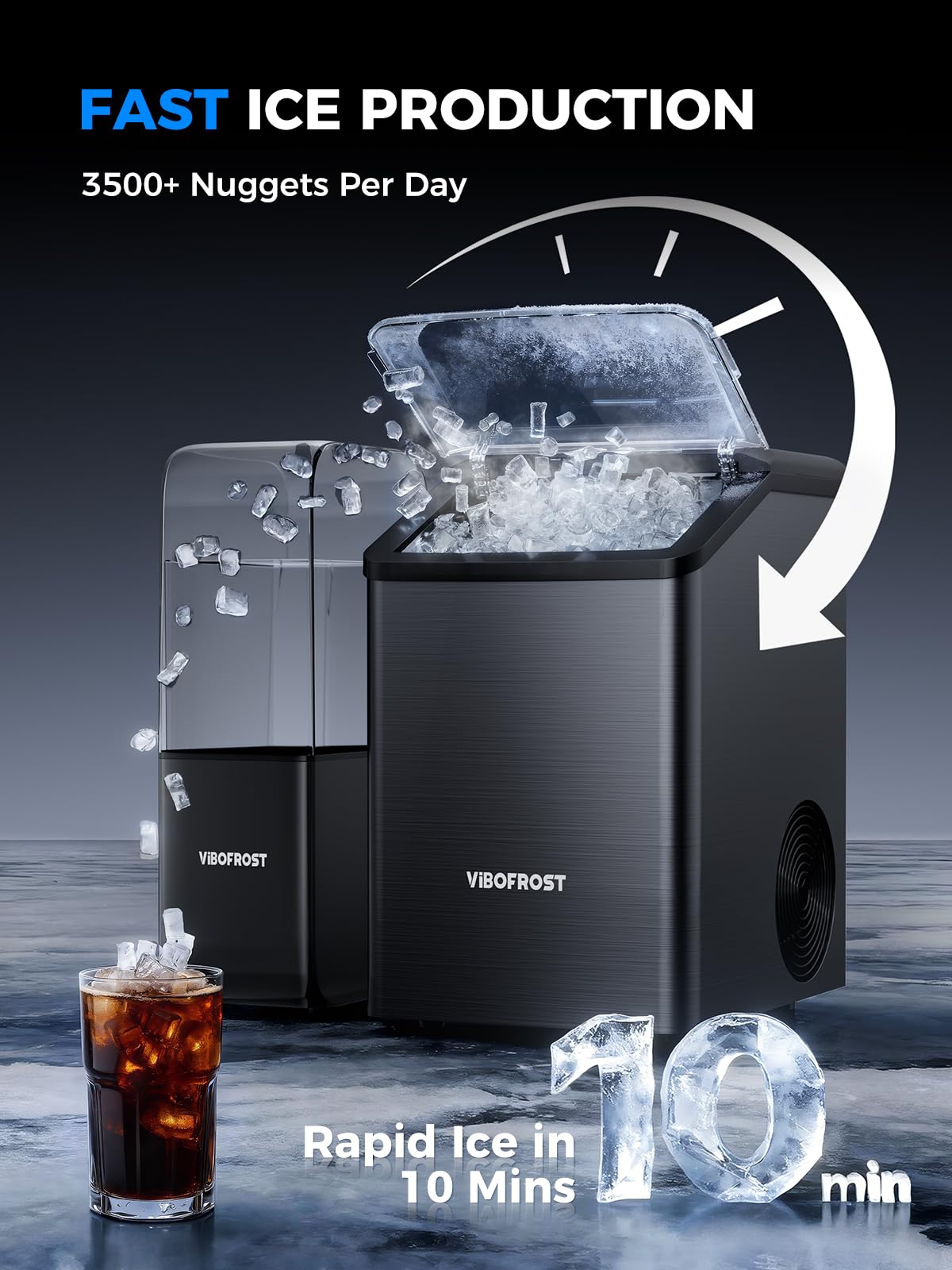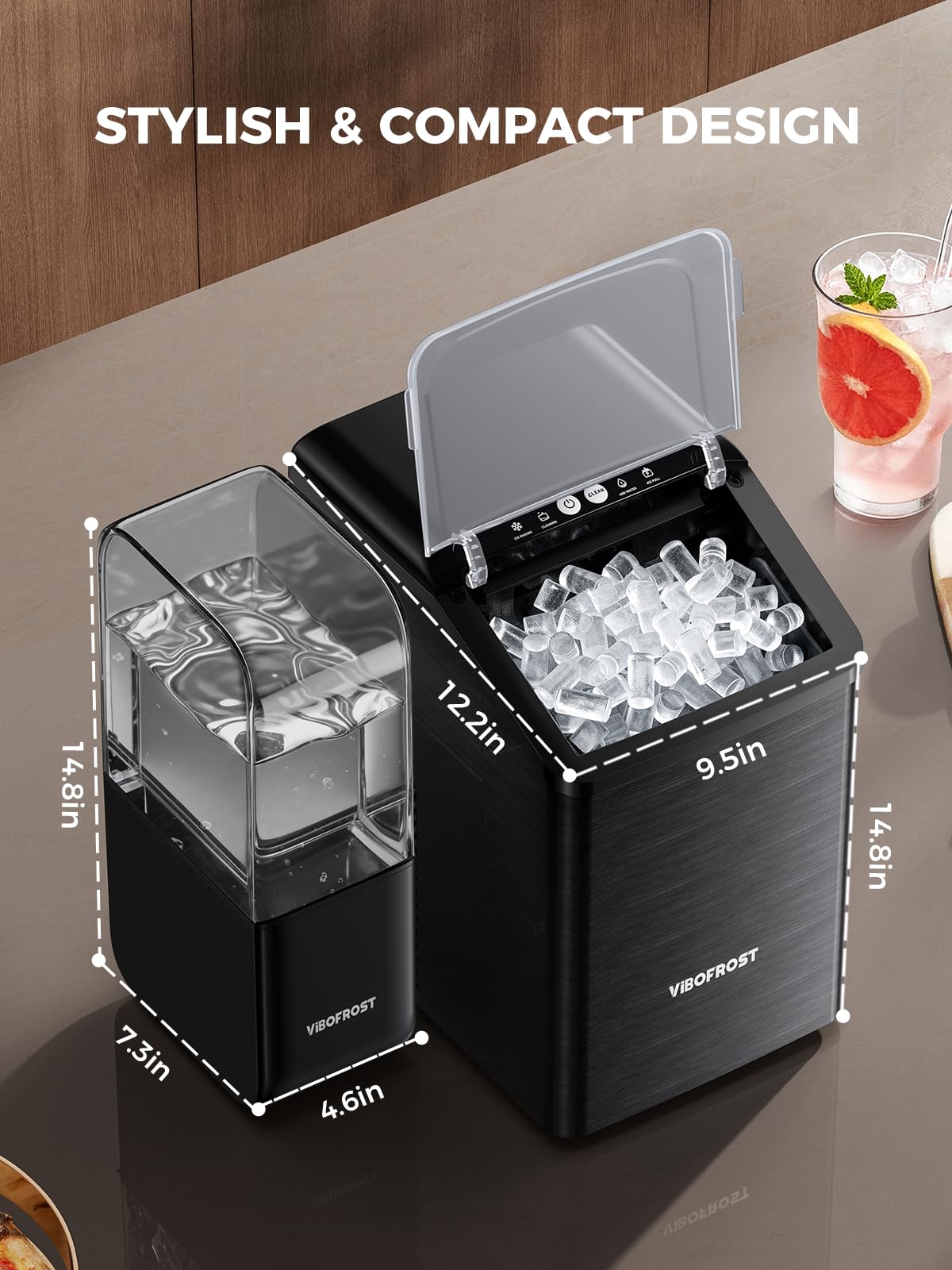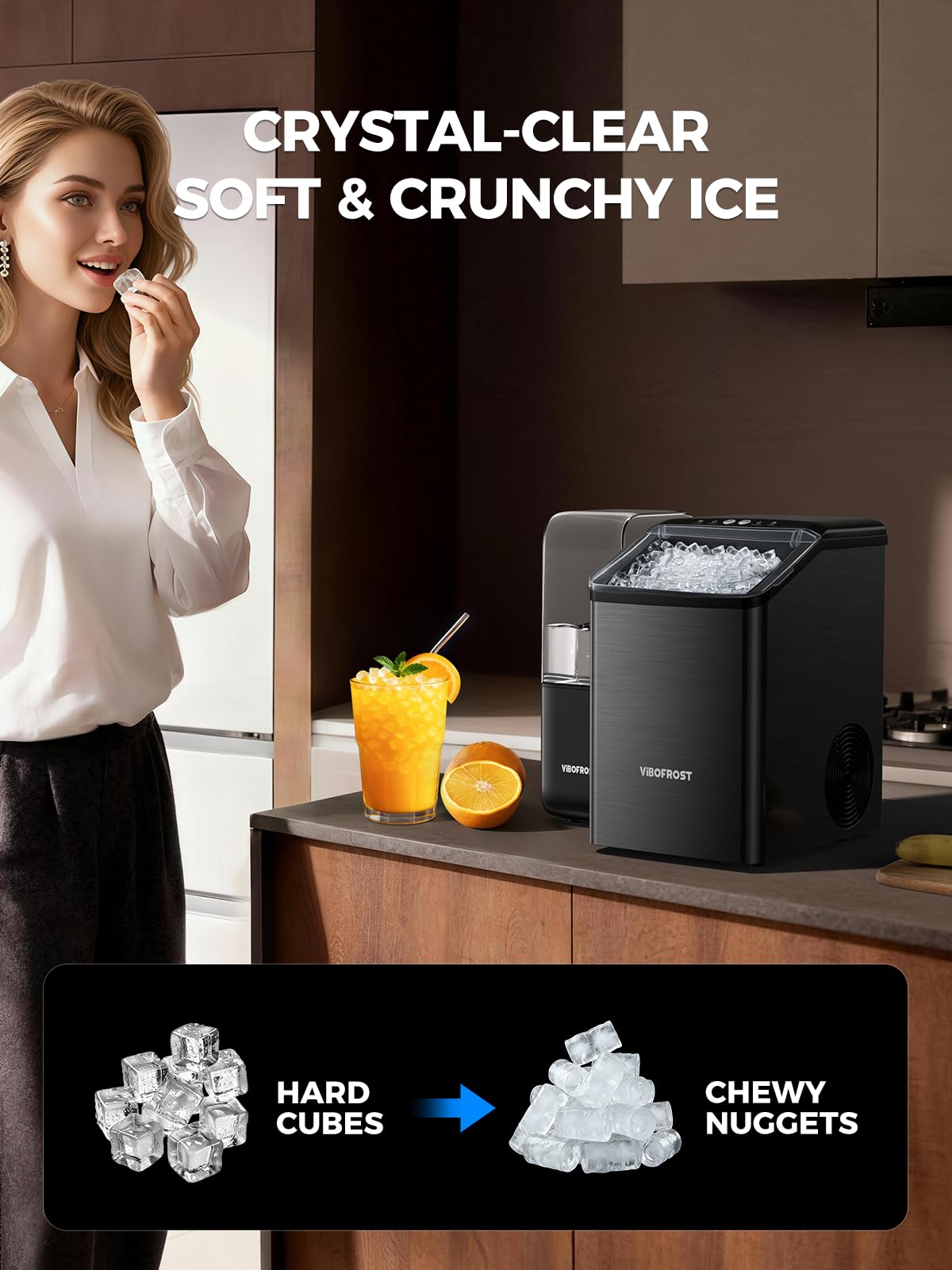 [Ultimate Chewable Ice]: This upgraded nugget ice maker quickly produces soft, crunchy sonic ice that’s perfect for any drink and gentle on your teeth