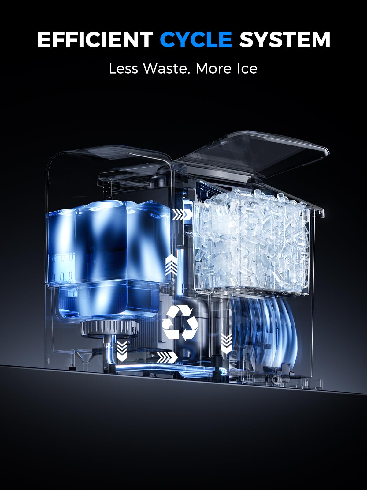 [Cleaner, Fresher Ice]: Press the “Clean” button to start a 5-minute rinse. The smart system keeps water away from the ice to prevent melting or clumping, while a high-flow pump thoroughly flushes the ice path for crystal-clean, fresh ice every time