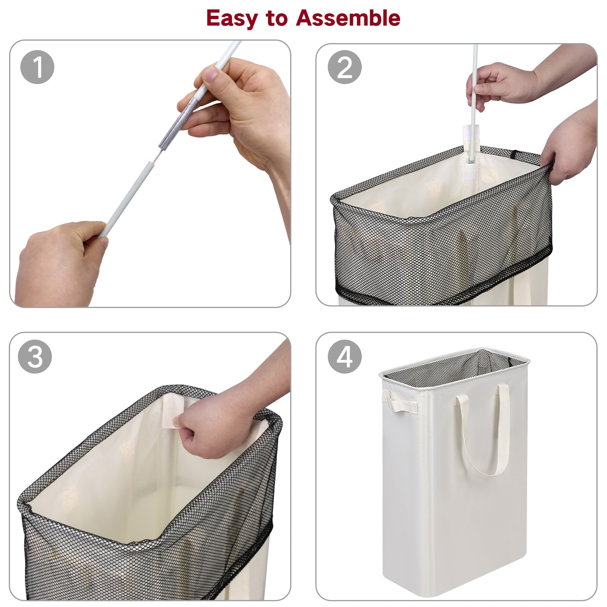 Collapsible Laundry Hamper: This collapsible hamper is supported by 4 rods. The support rods can be easily removed and folded away when not in use. The folded laundry basket is only 2'' and can be placed in any small corner.