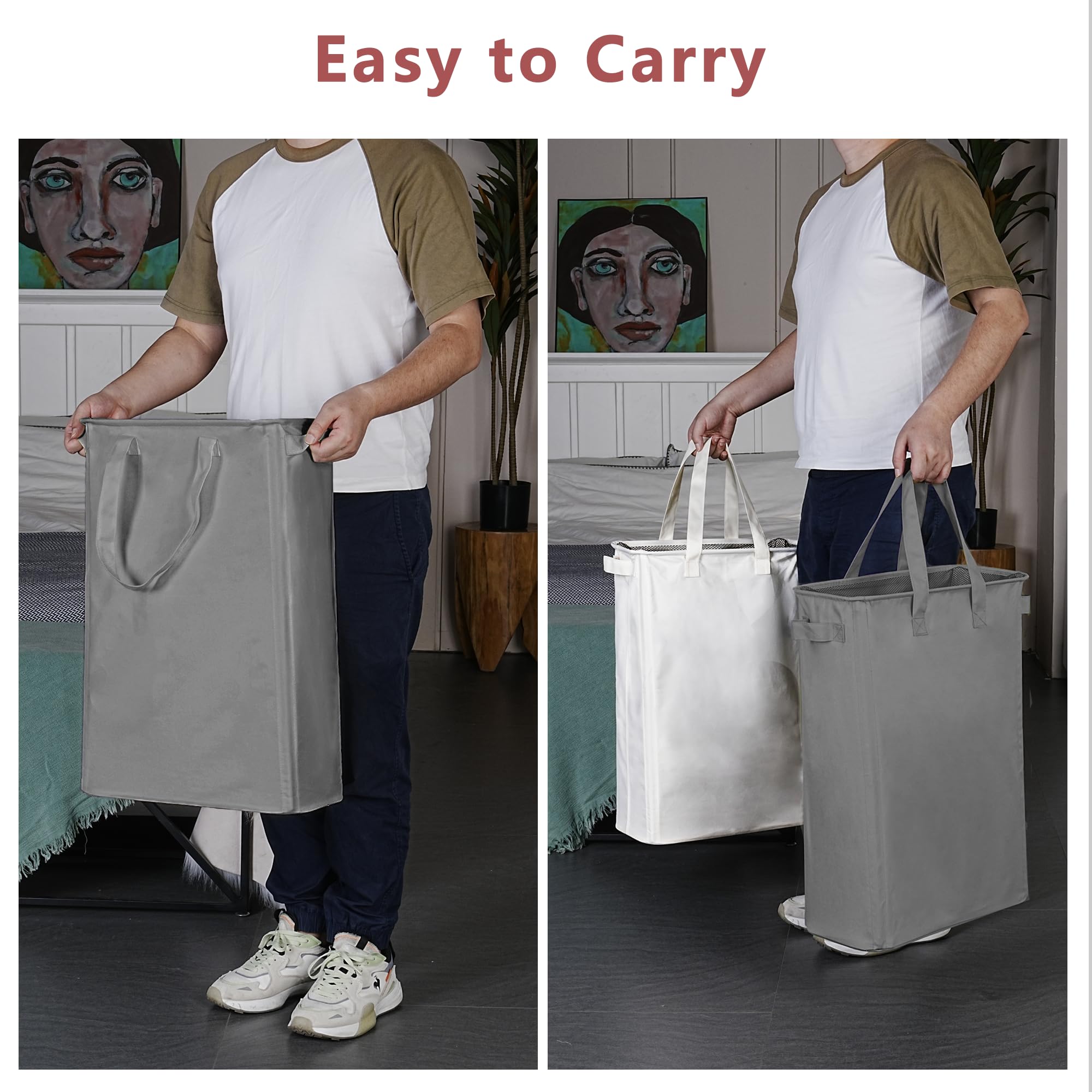 Durable & Sturdy Material: The dirty laundry basket is made of 600D Oxford fabric. It won't tear or damage even after long time use. The laundry basket is designed with four handles so you can easily transport the laundry basket to your bedroom, bathroom or laundry room.