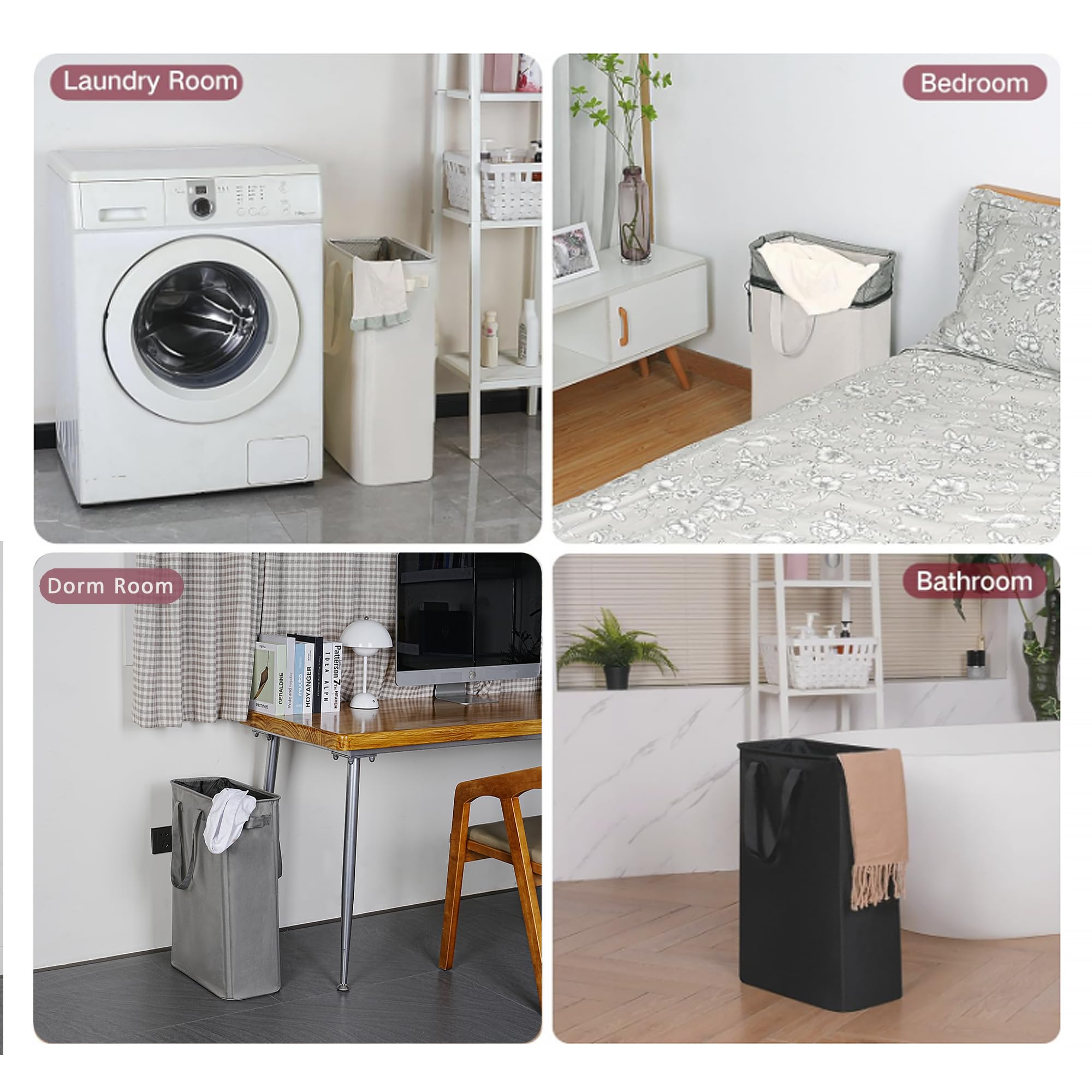 Skinny Laundry Basket: efluky skinny laundry basket is specially designed for small spaces such as closets, laundry room (between washer and dryer), bedroom or bathroom. It will help you make better use of every inch of space in your home.