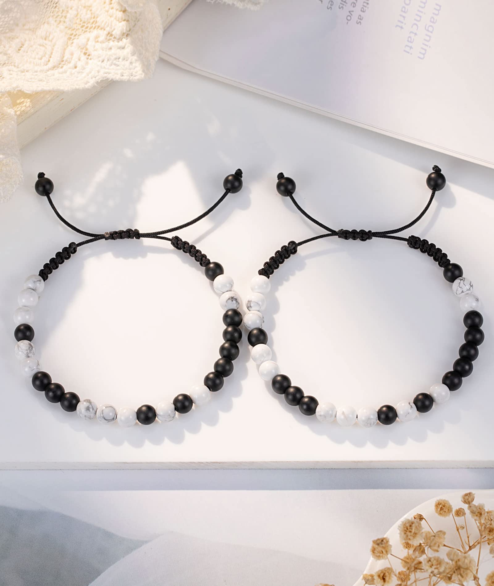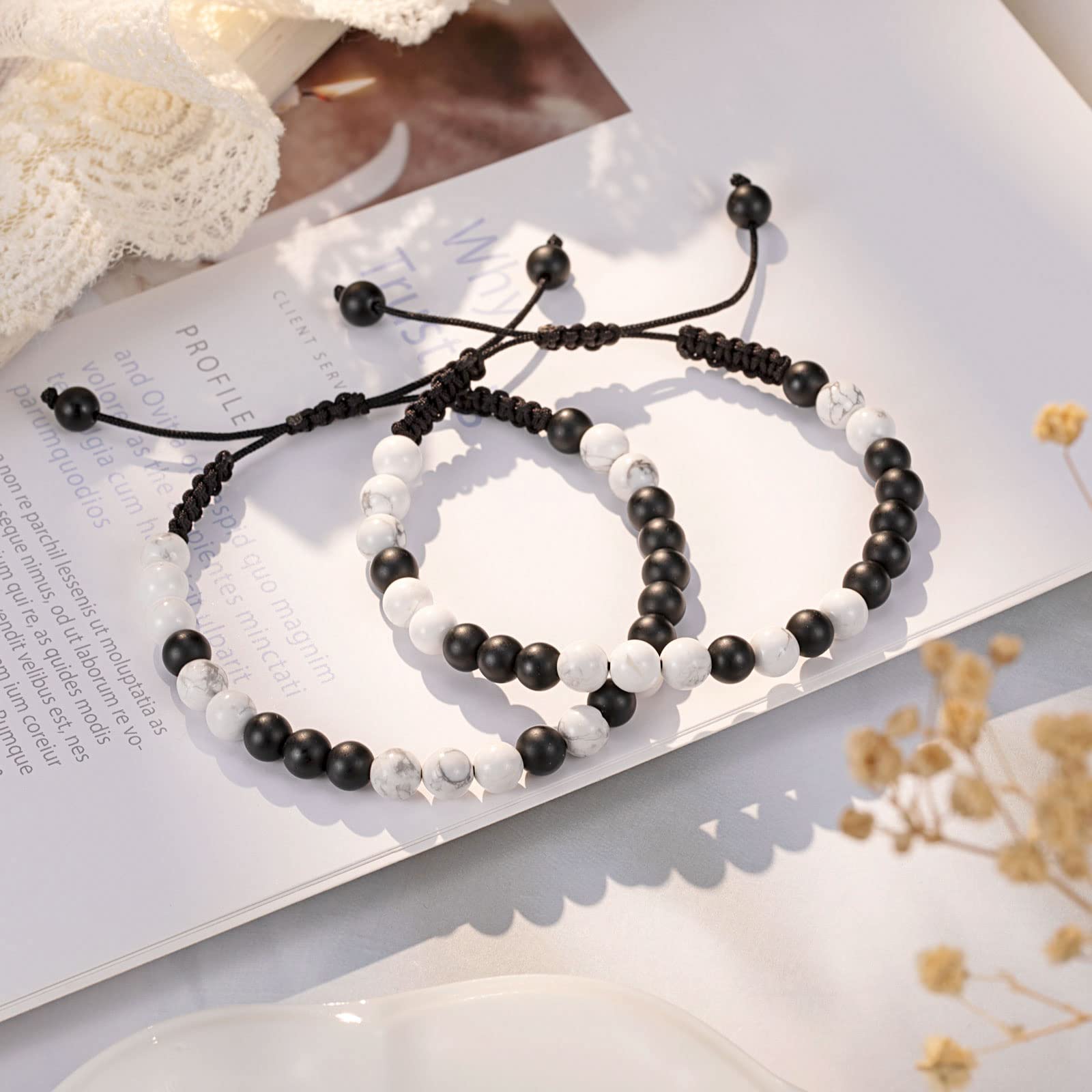【Material & Size】 -- This bracelet is made from nylon rope with 6mm natural Matte Agate&Howlite, comfortable to wear. The max length is 11", no worried about size, simply pull the strings to tighten or loosen the bracelet for a perfect fit.