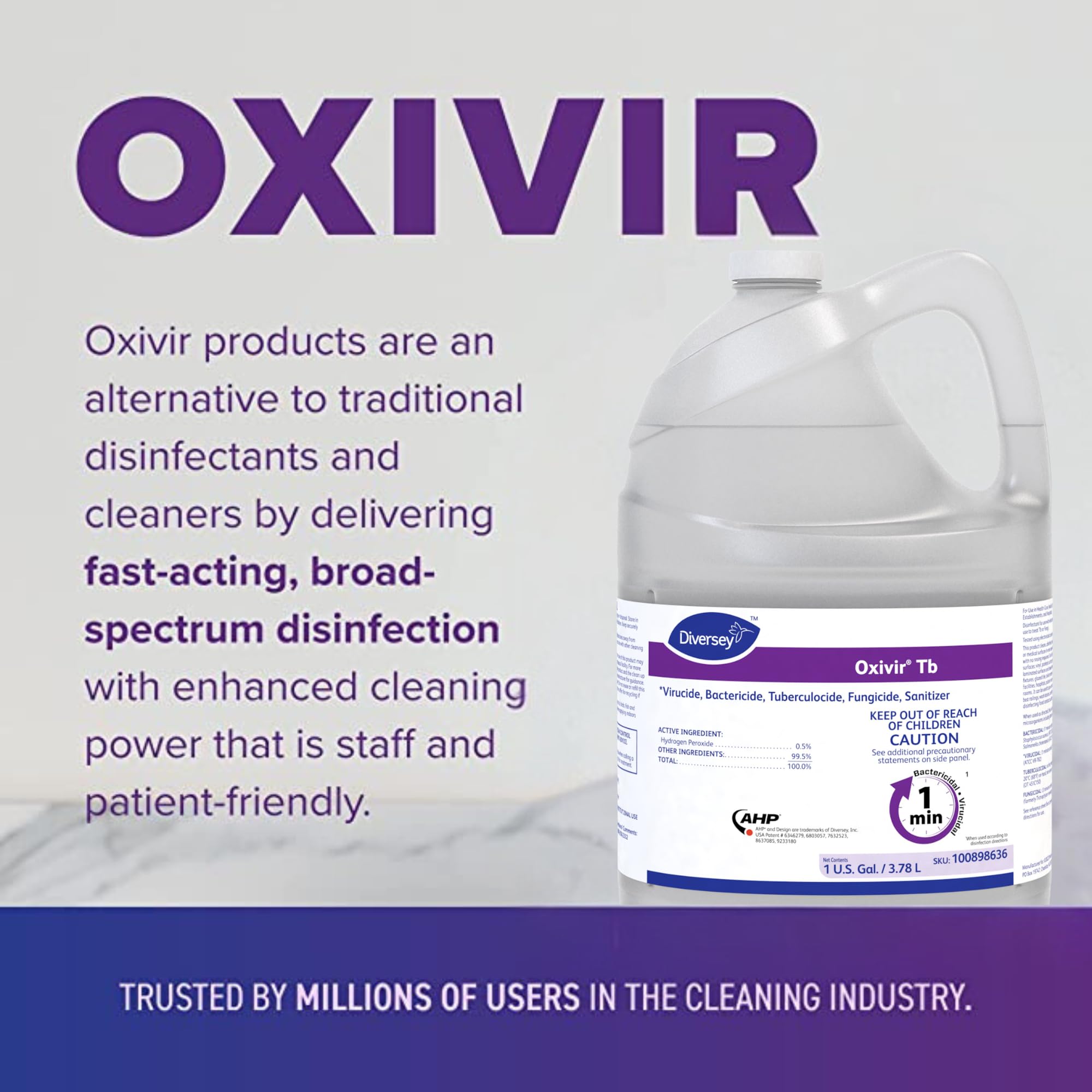 Oxivir Tb One-Step Disinfectant Spray Cleaner uses proprietary Accelerated Hydrogen Peroxide (AHP) technology to deliver superior disinfection and cleaning results. This Disinfecting Spray is suitable for use as a virucide, bactericide, tuberculocide, fungicide, non-food contact sanitizer, and soft surface sanitizer. Oxivir Disinfecting Spray Cleaner kills MRSA and Norovirus, and meets blood borne pathogen standards for decontaminating surfaces/objects soiled with blood/body fluids. Oxivir Tb Disinfectant Spray Cleaner is EPA approved as a soft surface sanitizer.