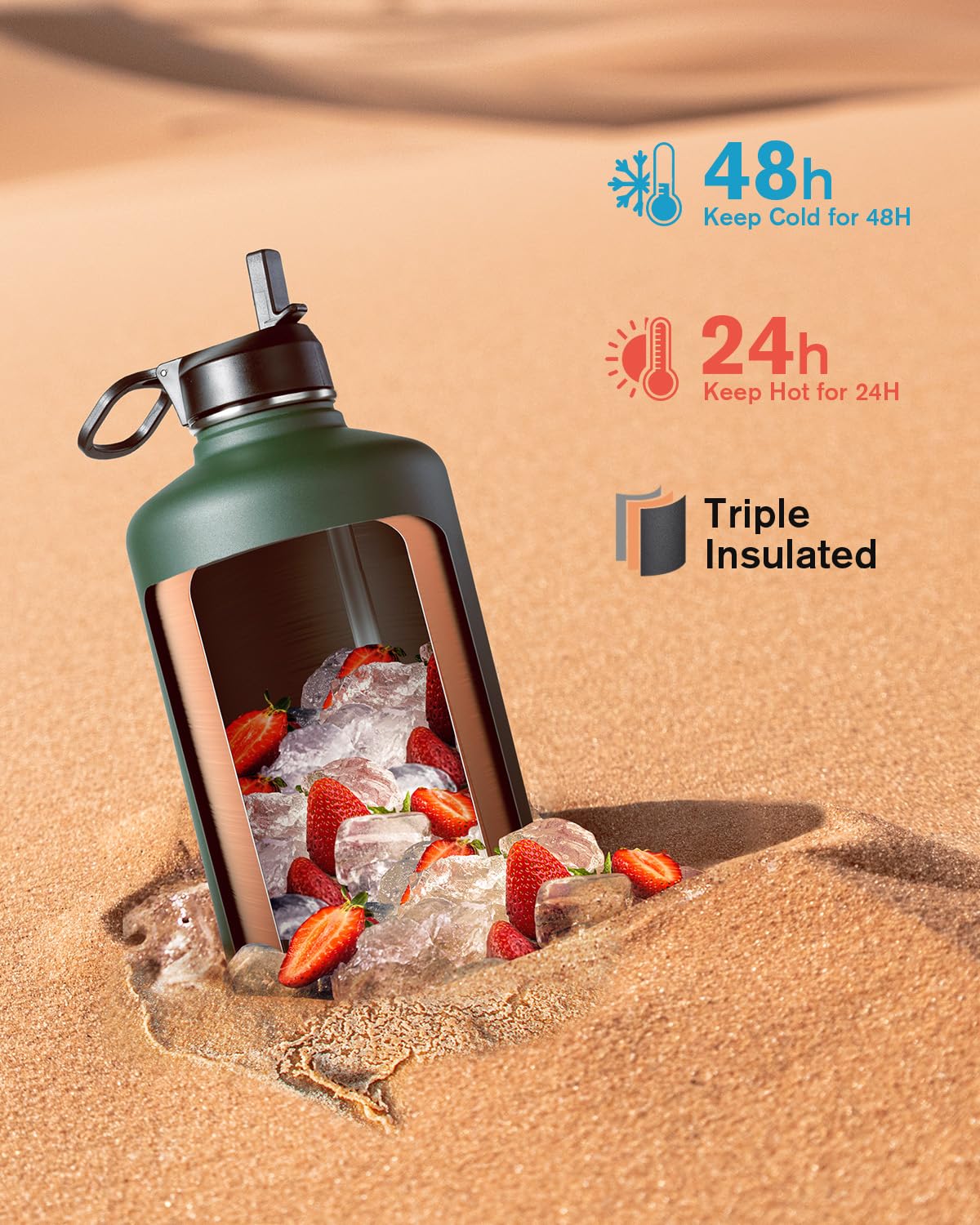 Travel Longer: With 128 oz large capacity, the large water bottle allows you to enjoy your trip easier with fewer refills, perfect for hiking, camping and sport events. It's easy to stay hydrated and refreshed on exciting adventures with such a versatile bottle