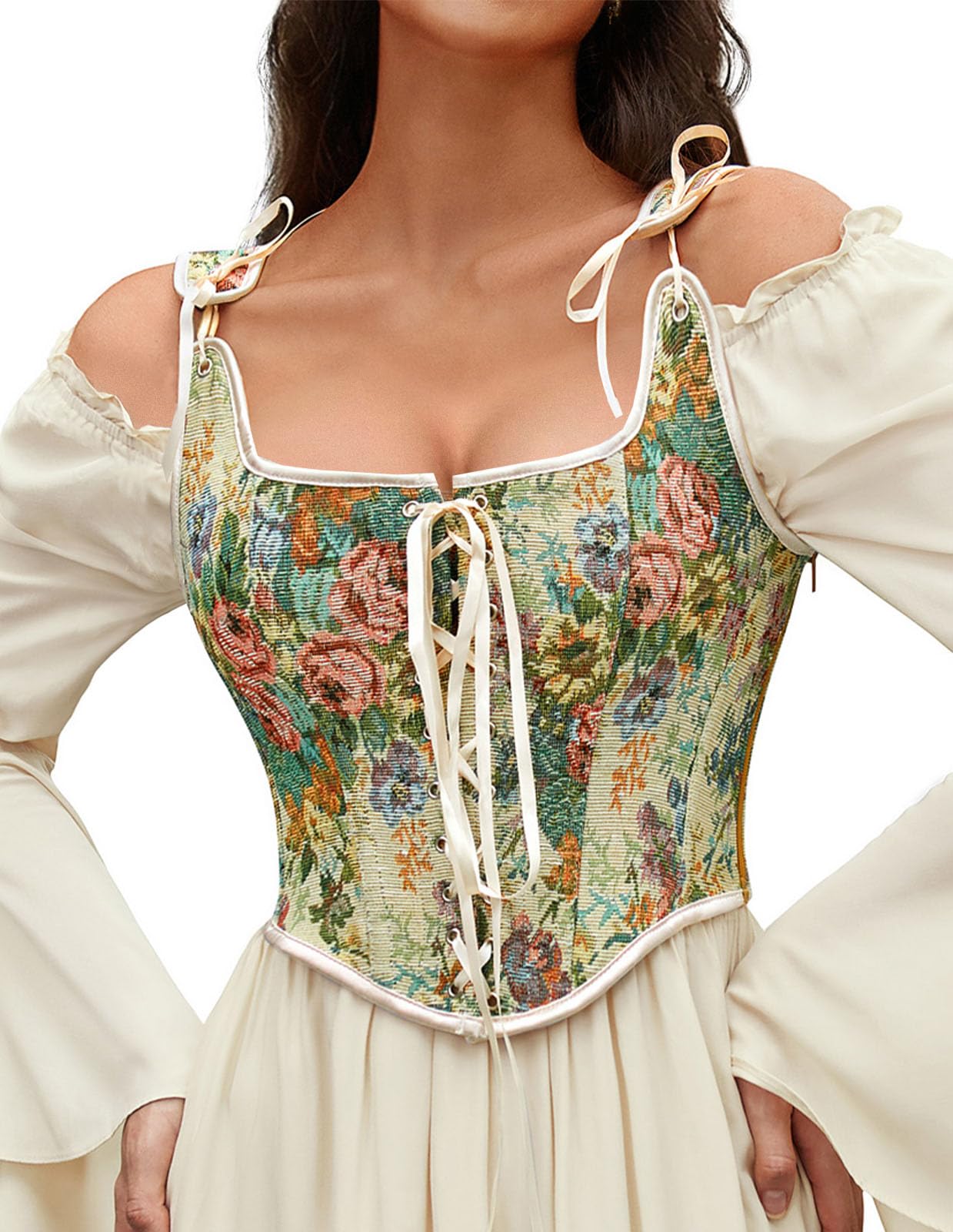 OCCASIONS - These floral vintage corset tops are perfect for various occasions, including Renaissance fairs, pirate-inspired parties, Halloween costumes, and medieval fairs. They can effortlessly elevate your look for any event