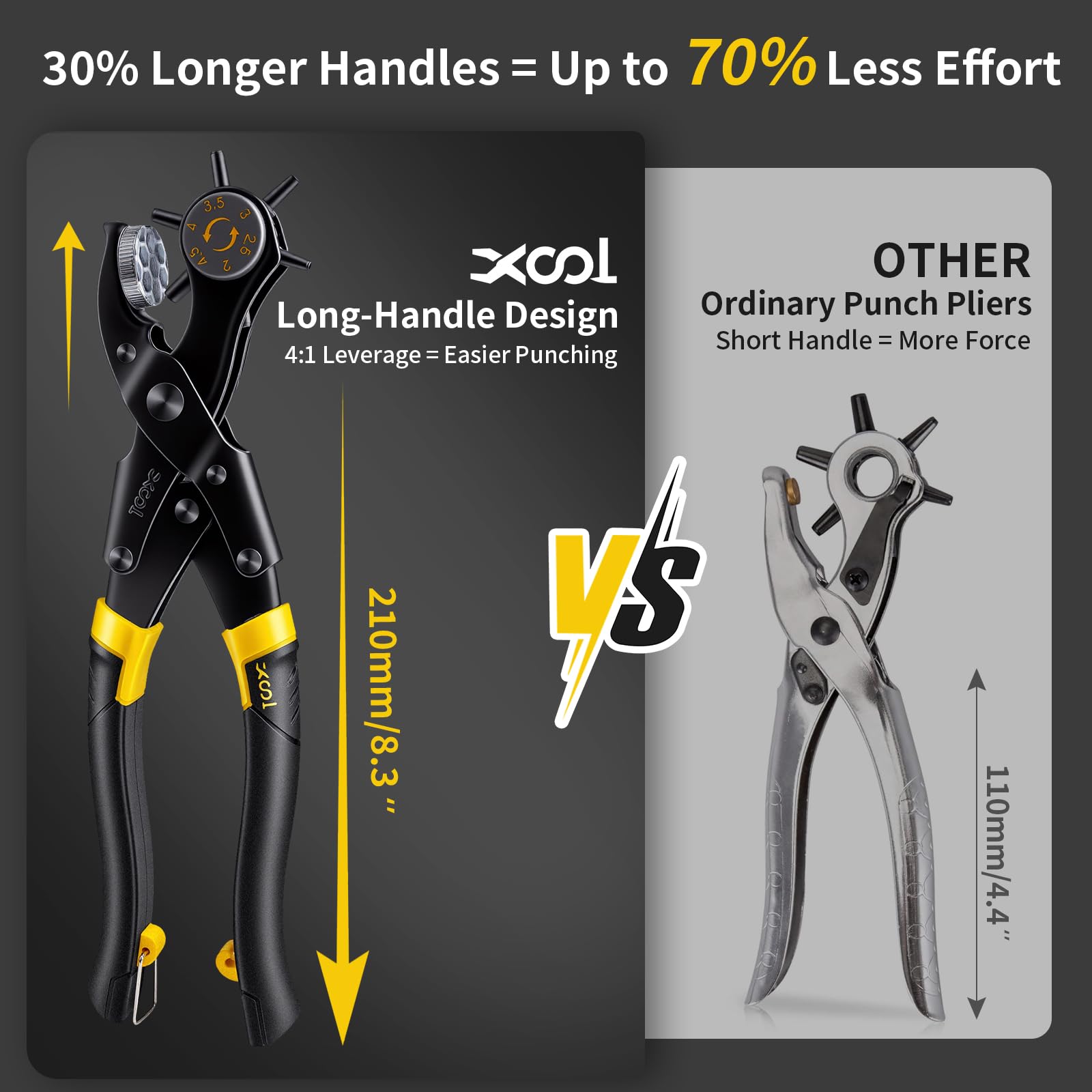 Effort-Saving Long Handle Design - Unlike ordinary punch pliers, our upgraded model comes with extra-long handles that maximize leverage. This thoughtful design reduces the force required, making hole punching effortless and comfortable, even during repetitive use.