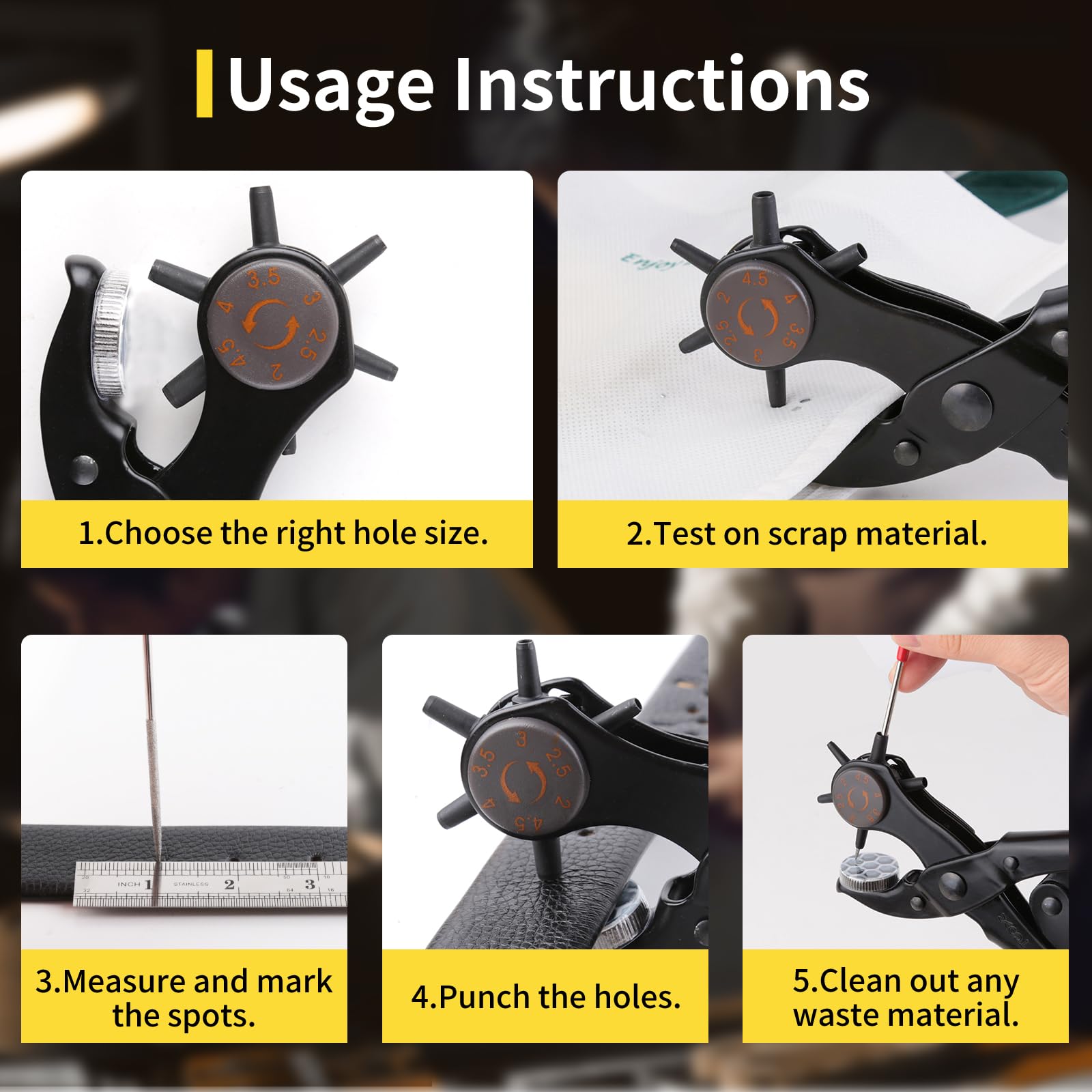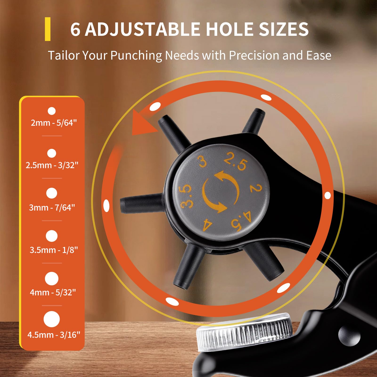 Versatile Size Range - Offers 6 different hole sizes from 2–4.5mm, suitable for belts, watch bands, pet collars, shoes, saddles, and various DIY leather projects. Provides clean and precise holes every time.