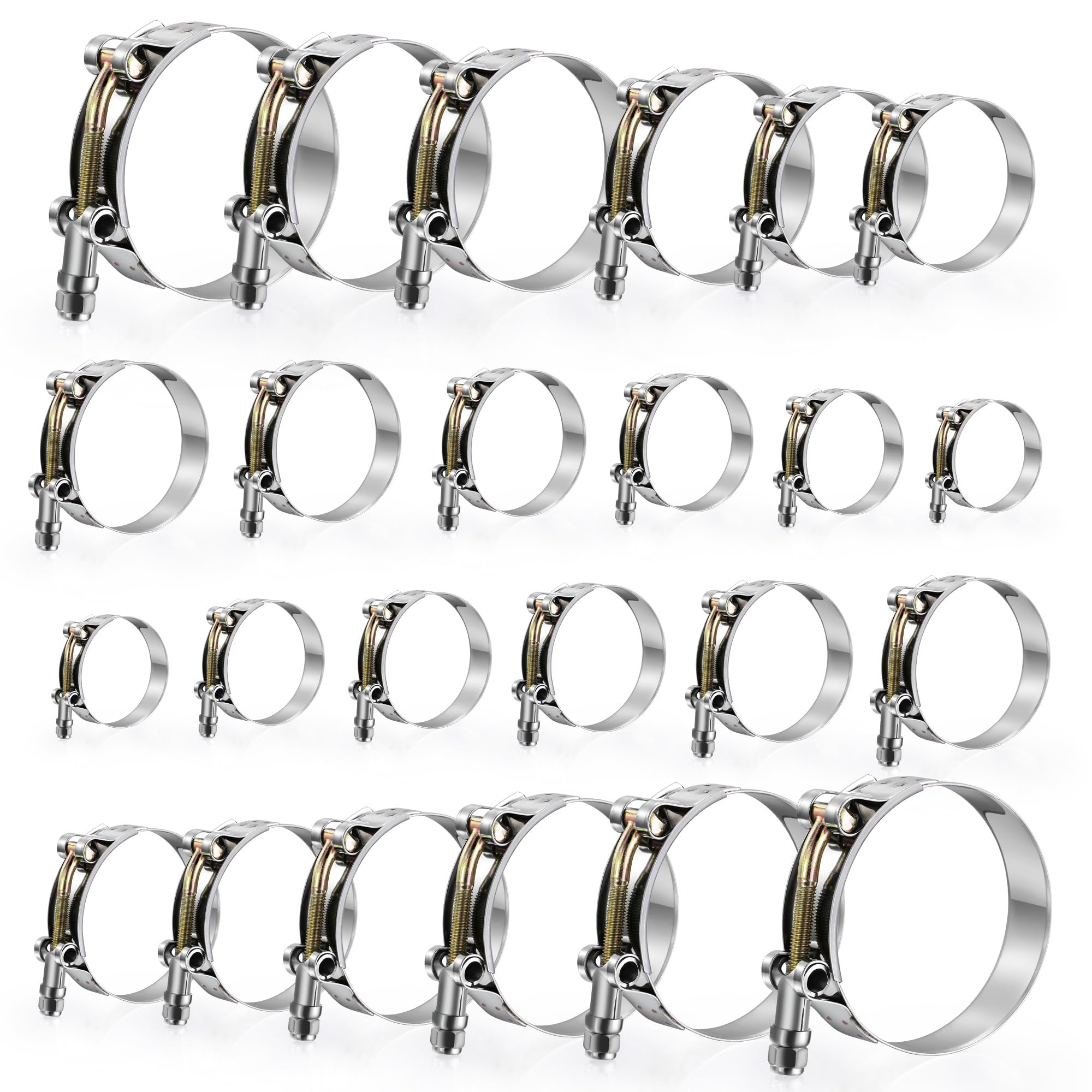 Material: T-bolt hose clamp is made of 304 stainless steel, which is corrosion-proof, rust-proof and enduring. The surface is polished, and the size is printed, which is clear at a glance and easy to find