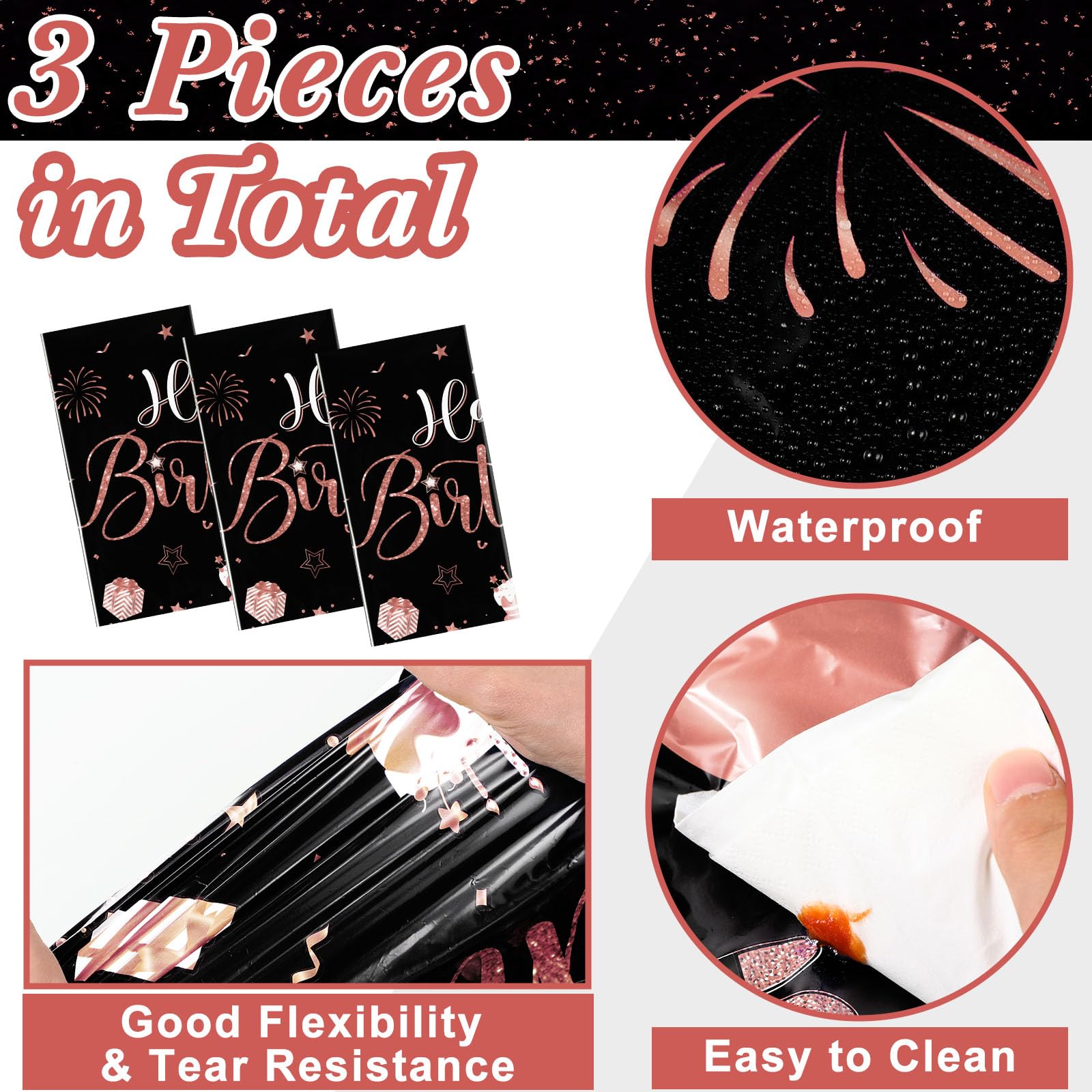 What You Will Receive: the package contains 3 pieces of happy birthday tablecloths in classic black and rose gold colors, enough to meet your using and replacing needs for holding a birthday party