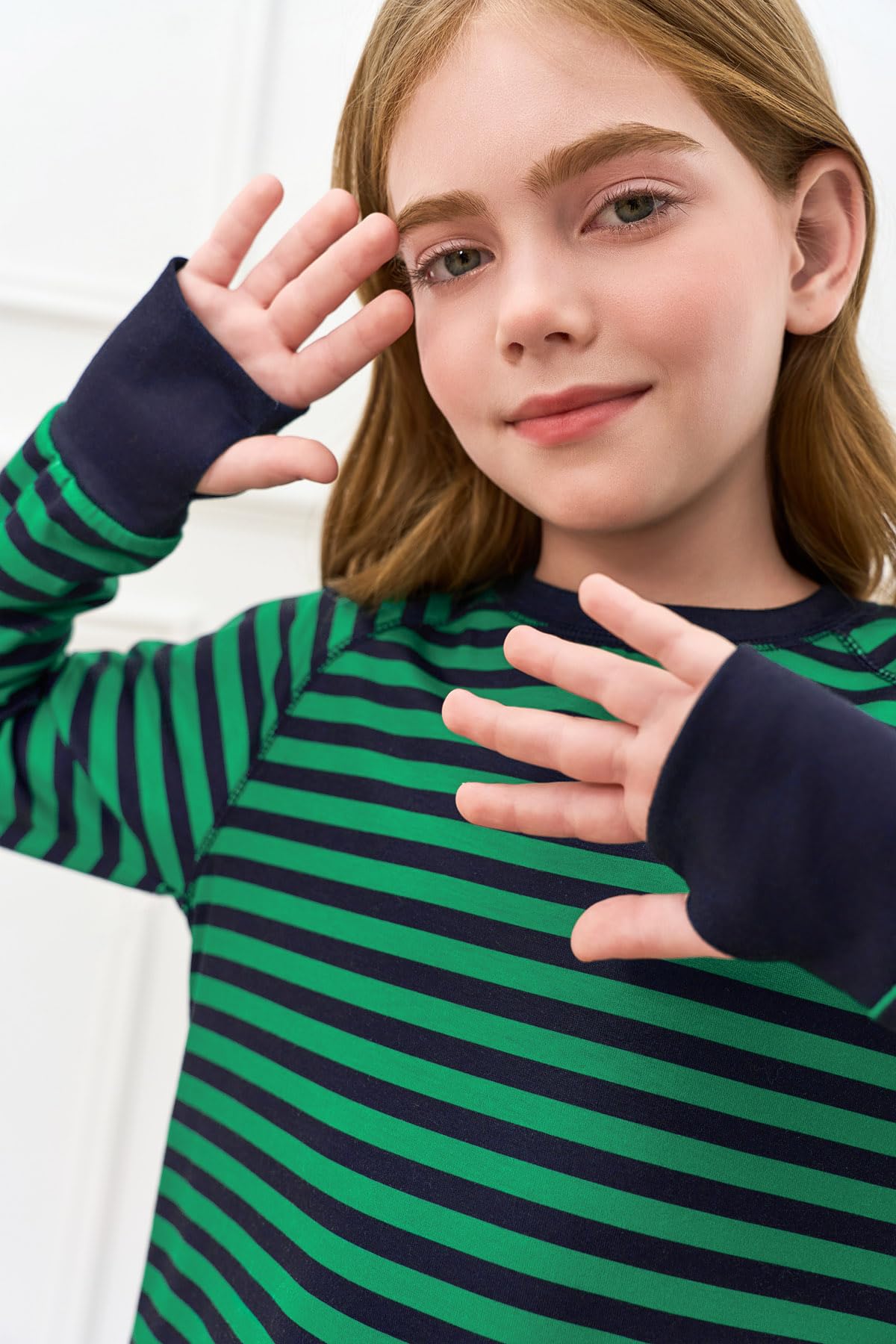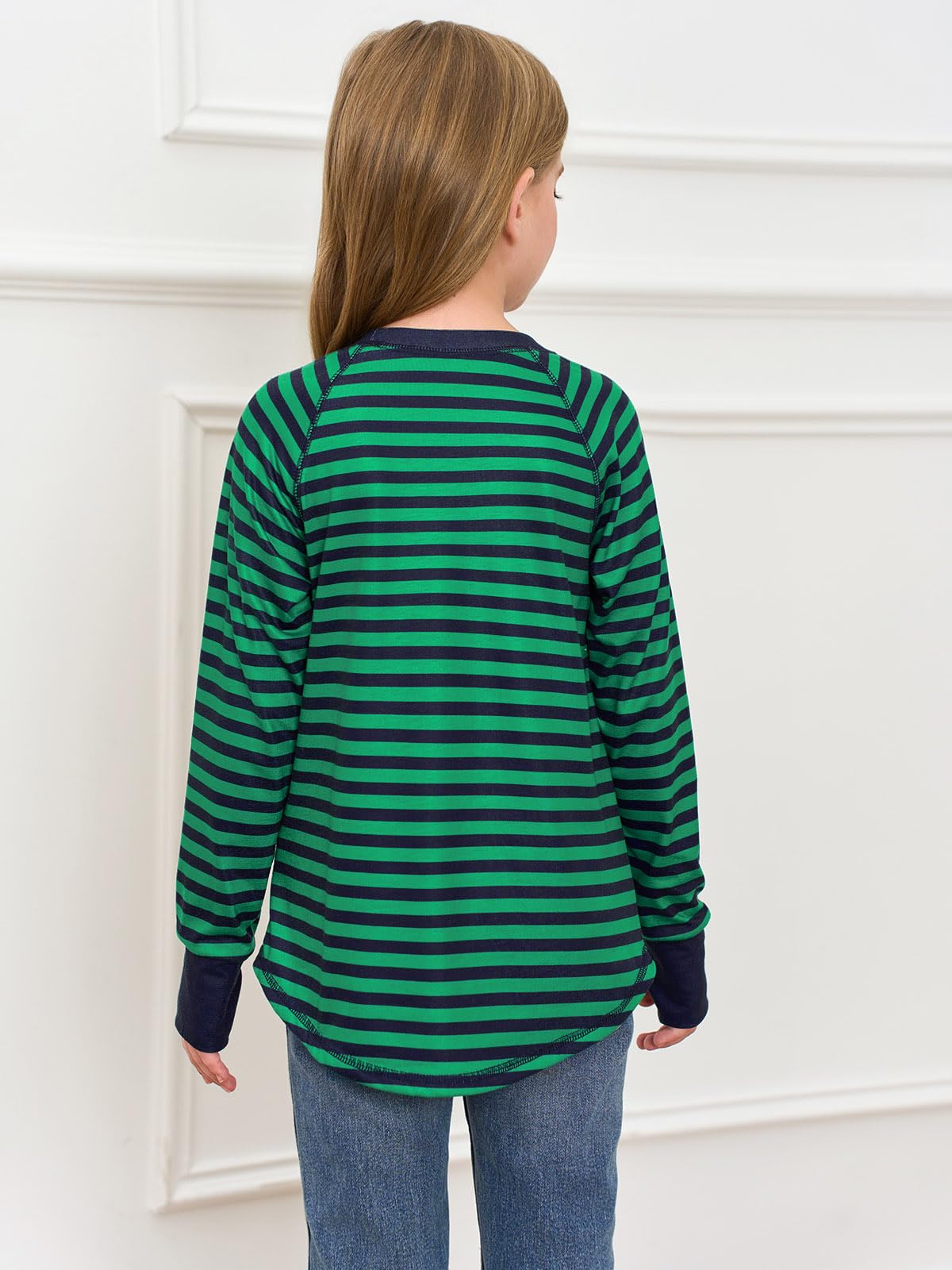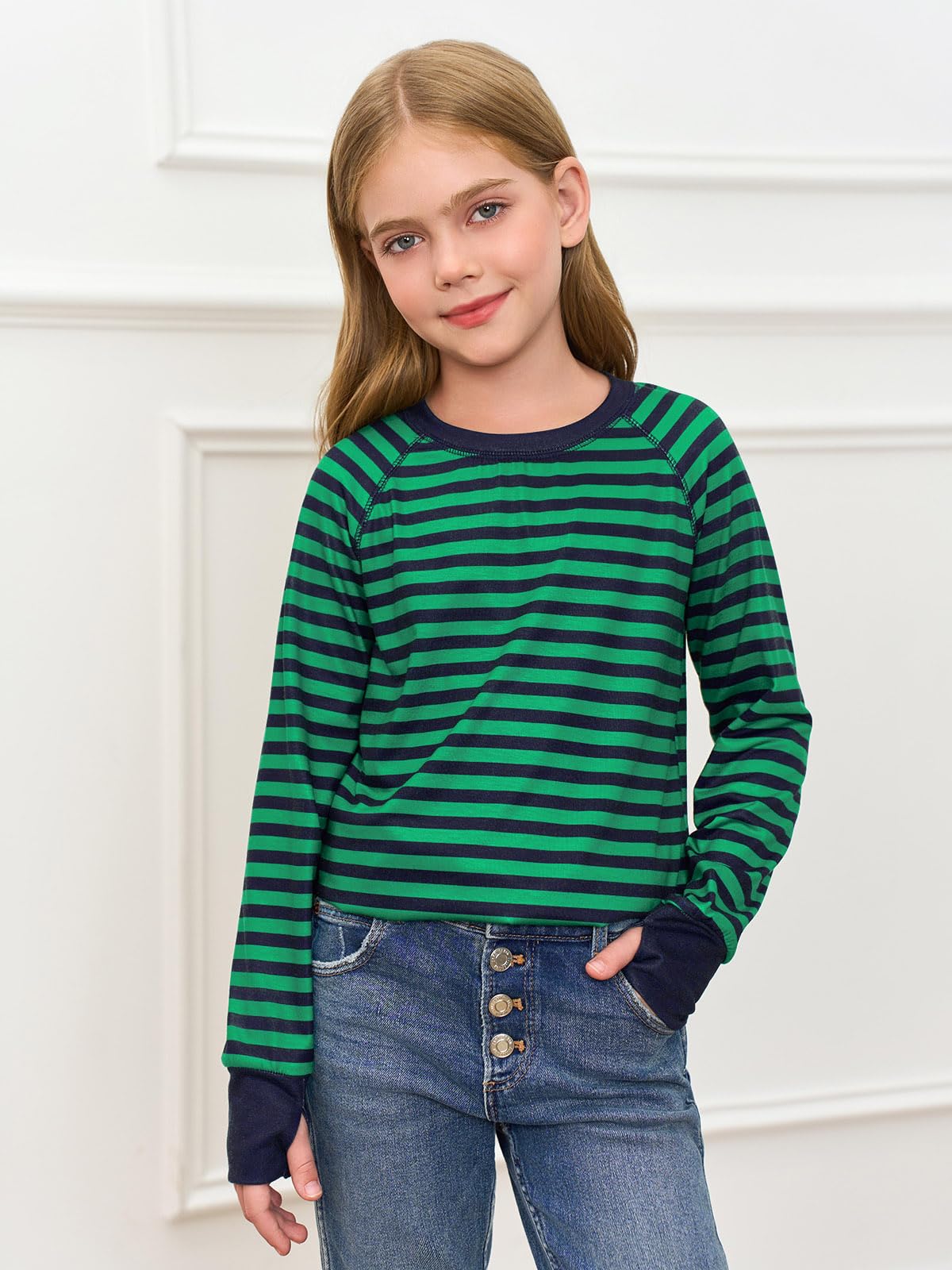 Features: Long sleeve shirts for girls loose fit, casual pullover tunic round neck tops with thumb holes, casual t-shirt, crew neck sweatshirt for kids, cute fall tops with curved hem, classic stripe colors top. The curved hem will bring some much needed “oomph” to your day-to-day looks