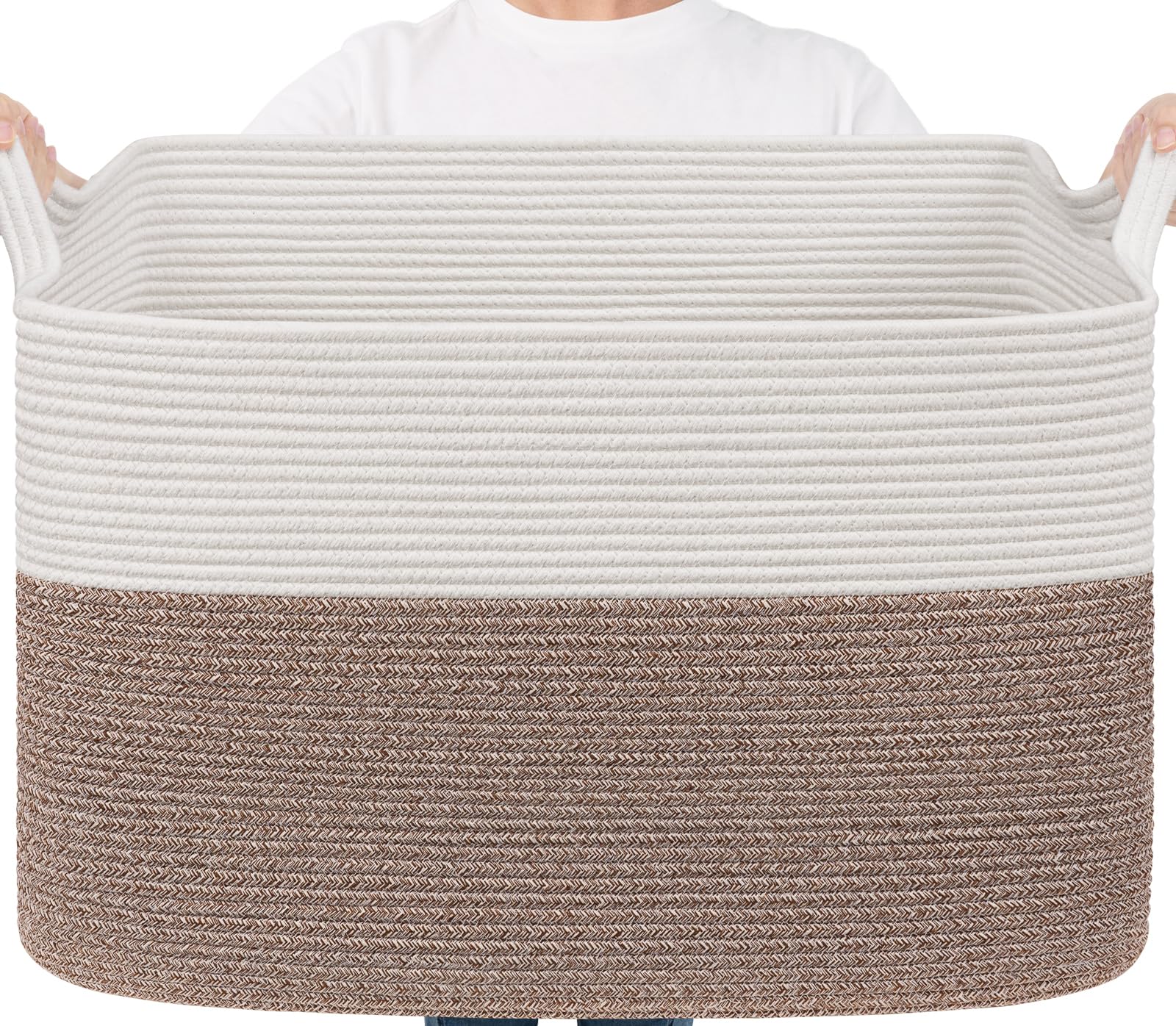 Large Capacity: 25"L x 16"W x 16"H, this large rectangle basket with 105L capacity is perfect for storing throw blankets, pillow, cushions, clothes, towels and stuffed animals