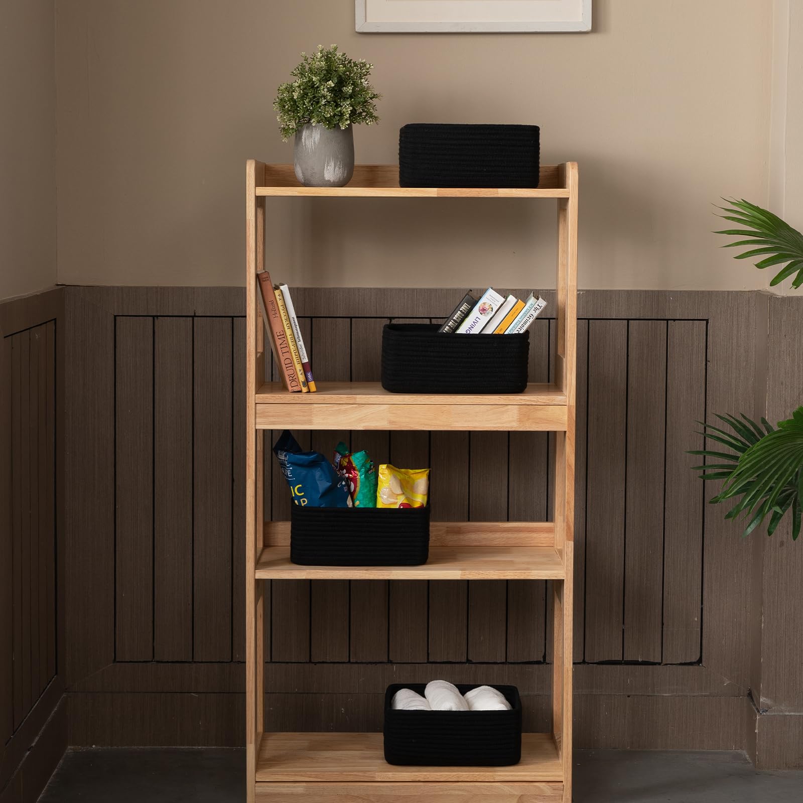 [Cute & Small Decorative Storage Baskets]: These 4 Pack woven baskets measuring 11.81” x 7.87” x 4.72”, the fantastic woven rope baskets with mini size, which can work as shelf baskets for organizing, cute and practical for home decor, making your home more cozy and attractive