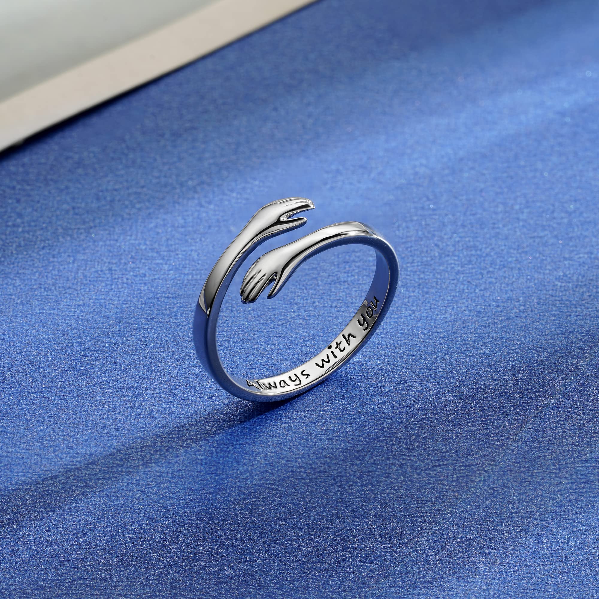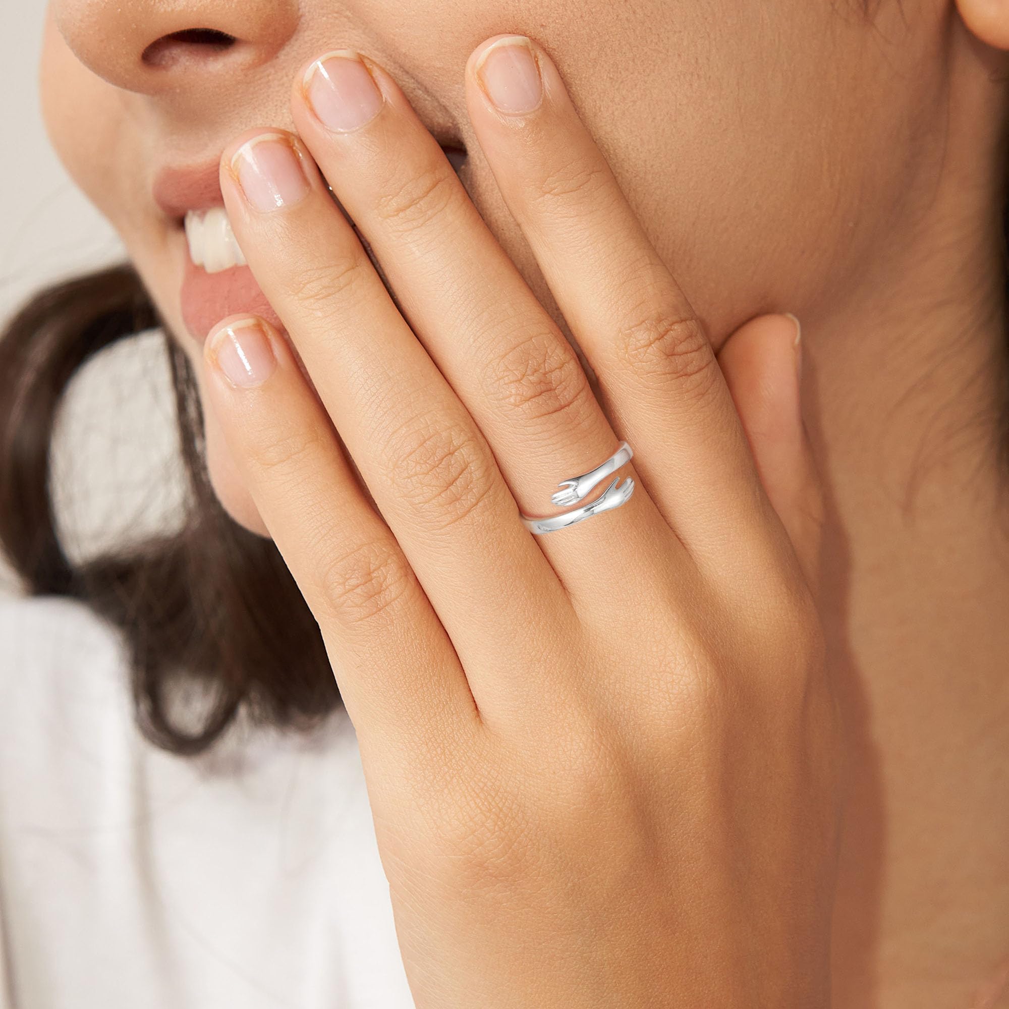 The love hugging hands rings made of high quality s925 sterling silver with excellent polishing and electroplating craftsmanship, which will make it look gorgeous and sparkling. Our fashion hug ring is nickel free, lead free, cadmium free, allergy safe to skin and not break, tarnish, fade easily.